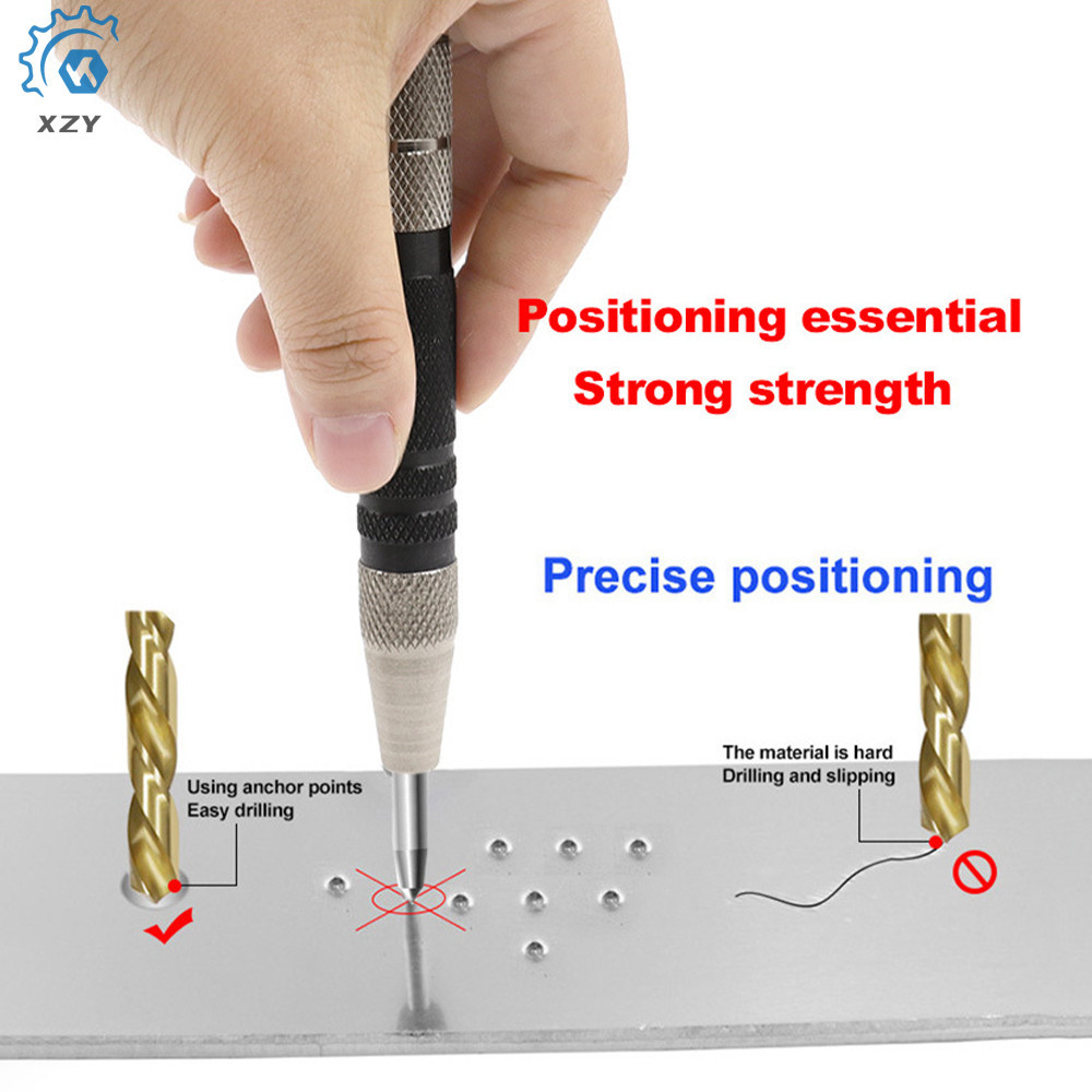 Super Strong Automatic Center Hole Punch 128mm/155mm Spring Loaded Center Punch Adjustable Tension Punch Tool for Metal Wood Glass Plastic