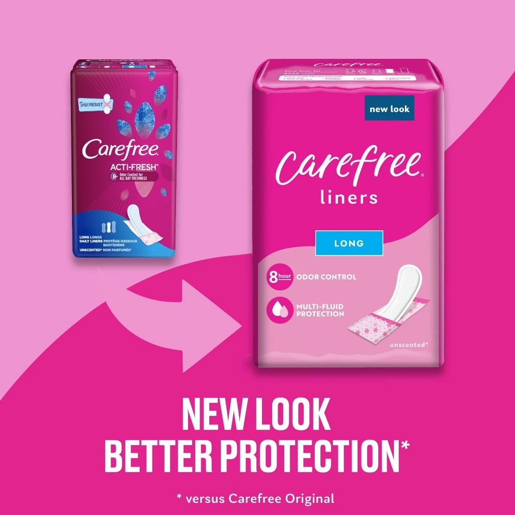 Carefree Regular Panty Liners, Long, Unscented, Wrapped, 8 Hour Odor Control, 42 Ct