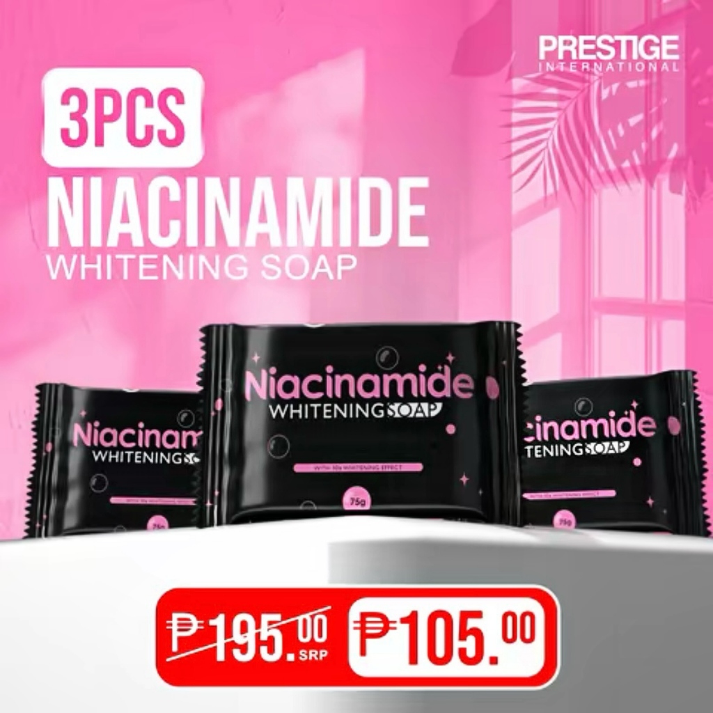 5PCS PRESTIGE NIACINAMIDE WHITENING SOAP ACNE&OILY SKIN,DRY SKIN,DARK SPOT 75g