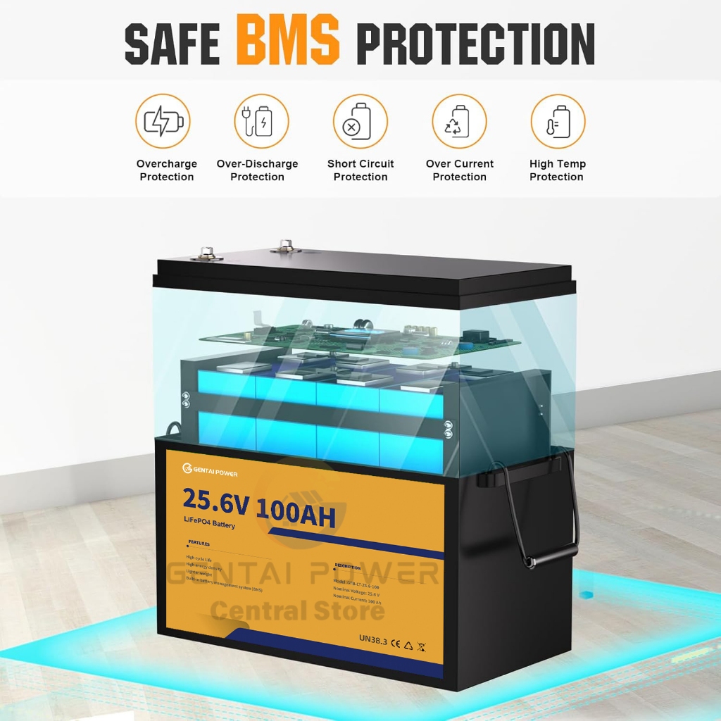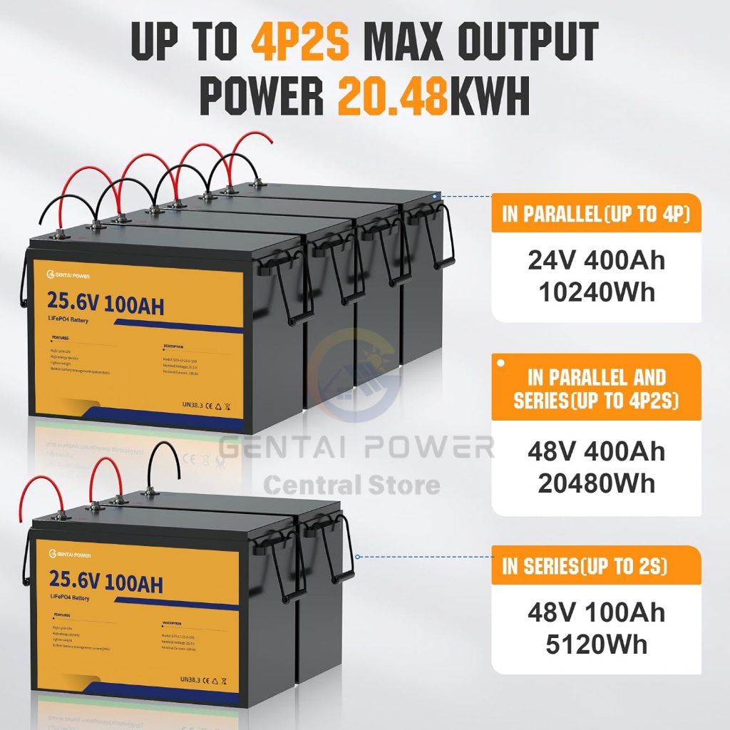 GENTAI LiFePO4 Battery 24V 100Ah Bluetooth Solar Lithium Battery Original 100A BMS 15000 Cycle