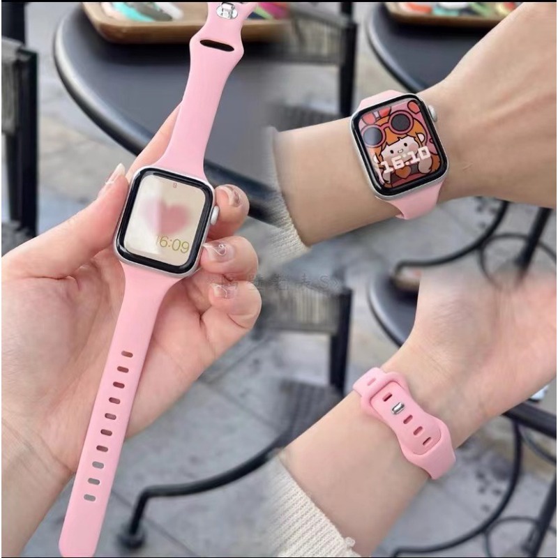 2024 Slim Silicone Strap For A-pple Watch Band 44mm 40mm 45mm 41mm Ultra 49mm 42mm 38 44 45 mm bracelet For iWatch series 9 7 8 se 3 4 5 6