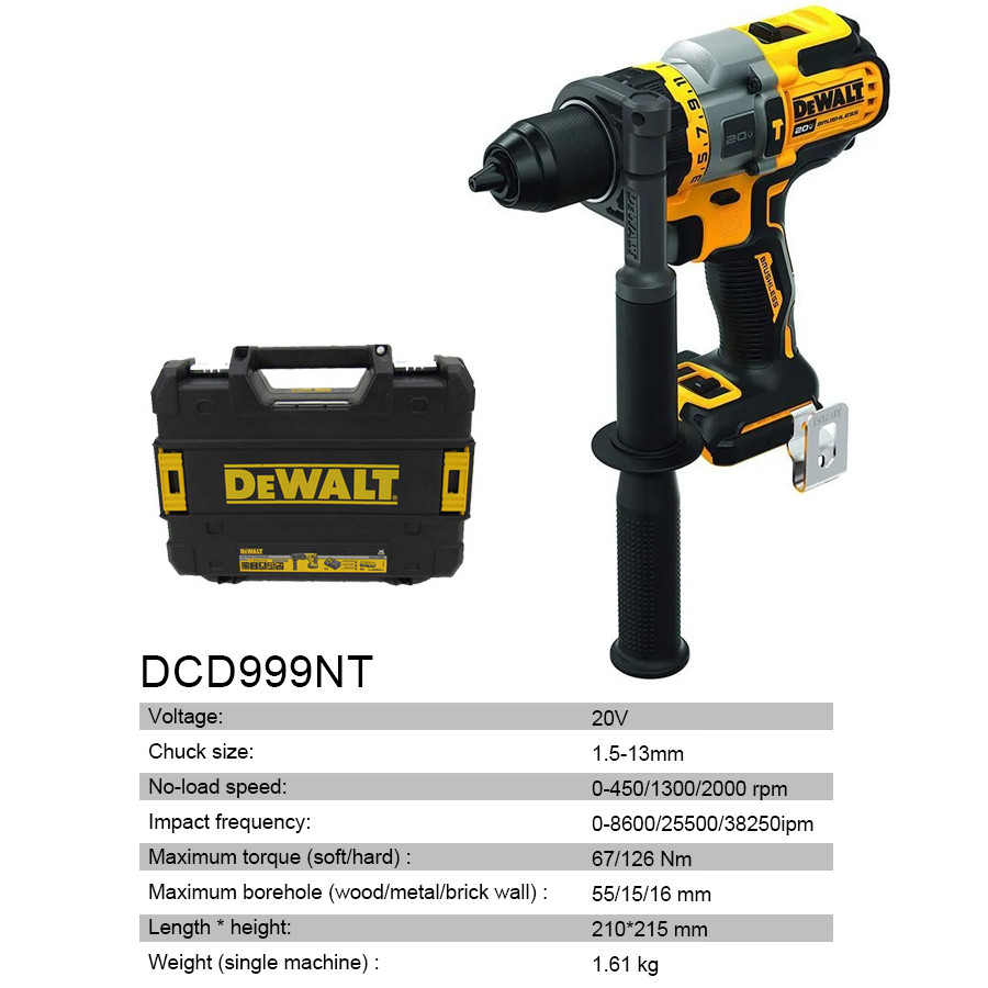 DEWALT DCD999NT 20V Brushless Cordless Electrical Drill with Tool Box Hammer Drill Impact Drill Driver Rechargeable Power Tools