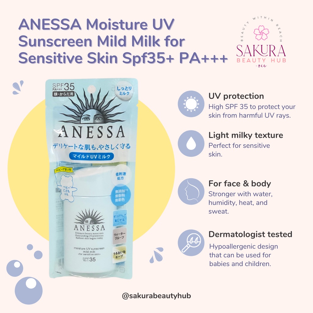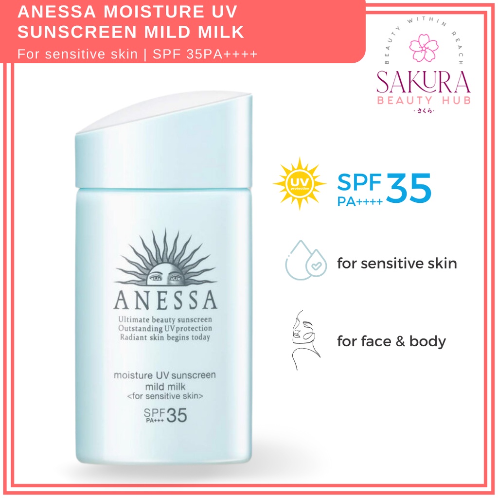 ANESSA Moisture UV Sunscreen Mild Milk for Sensitive Skin Spf35+ PA+++