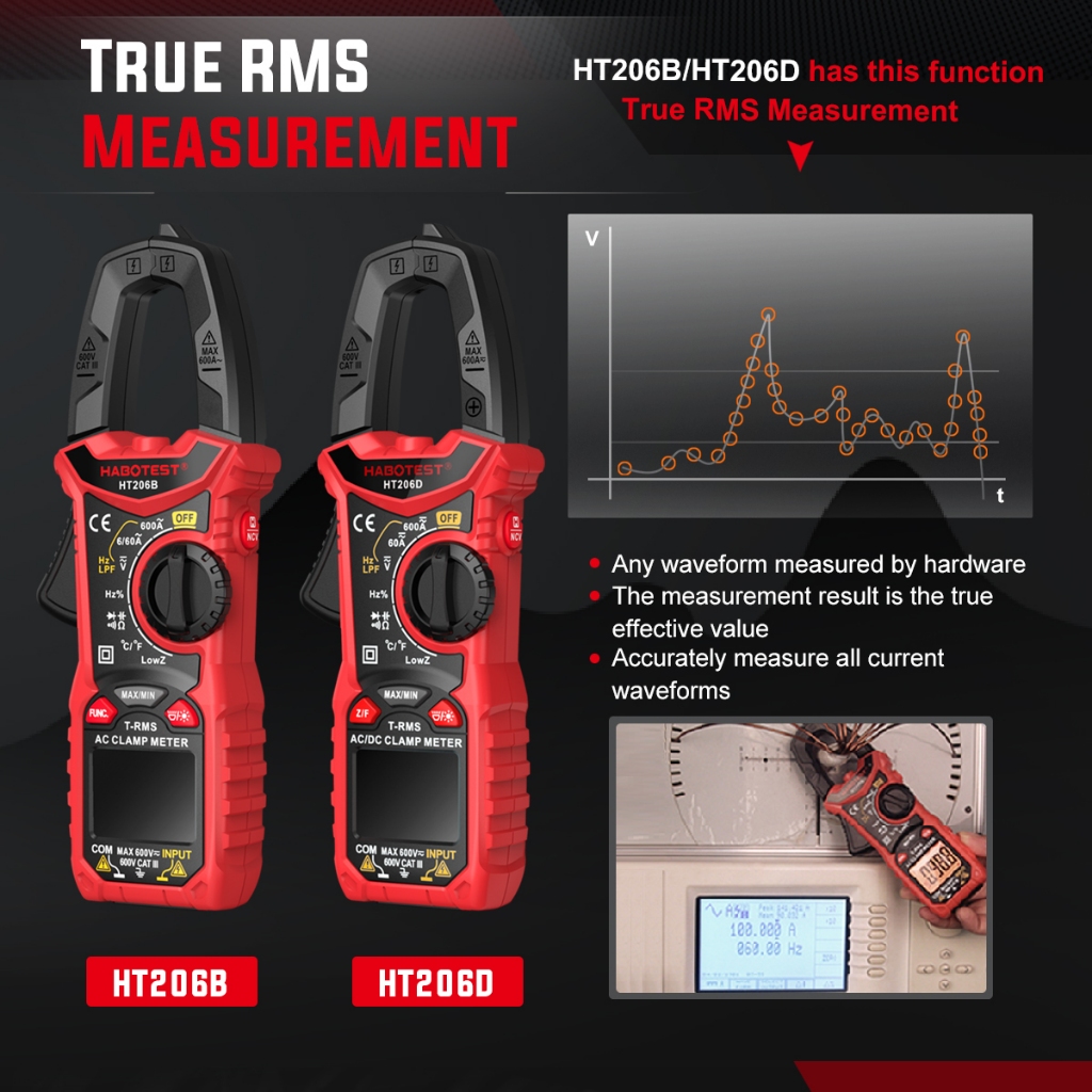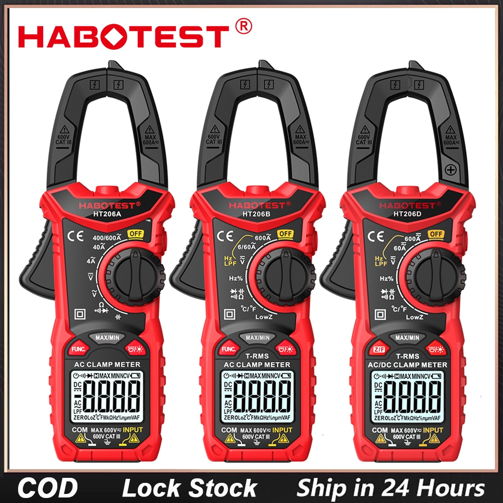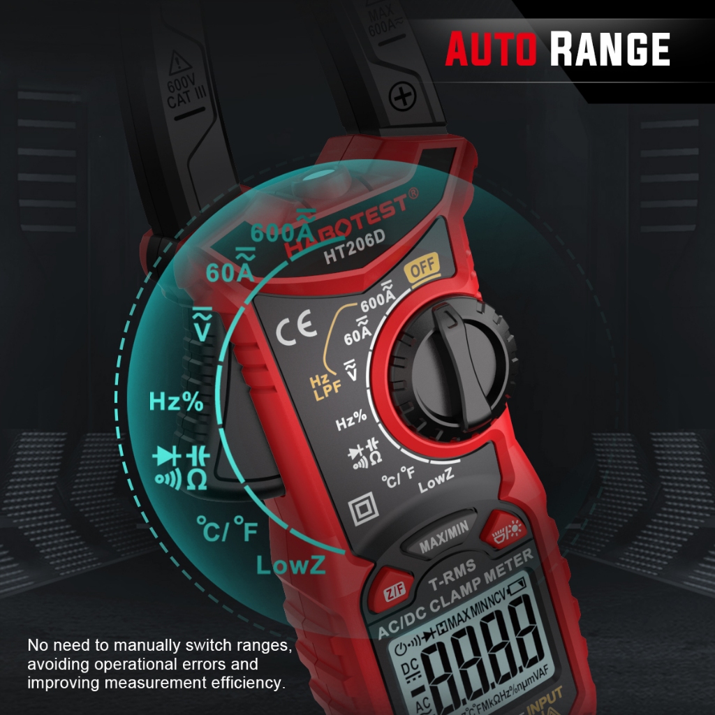 HABOTEST HT206 Digital Clamp Meter 600V AC/DC 6000 Counts Current Auto Range Multimeter 600A Ammeter Voltage Tester Ohm Continuity Hz