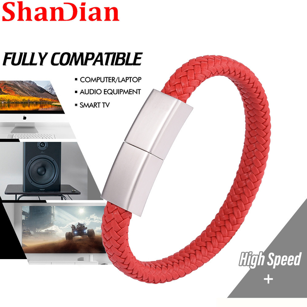 SHANDIAN Free Custom Logo USB Flash Drive 128GB Bracelet Pendrive 64GB Wristband Pen Drive 32GB Portable Flashdrive 16GB Creative Gift Memory Stick 8GB Laser Engrave Thumbdrive 4GB