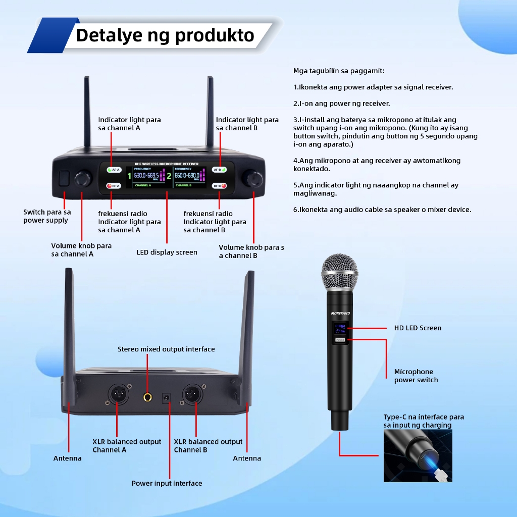 Propesyonal na wireless na mikropono UHF Isa hanggang Dalawang 2 Handheld Microphone