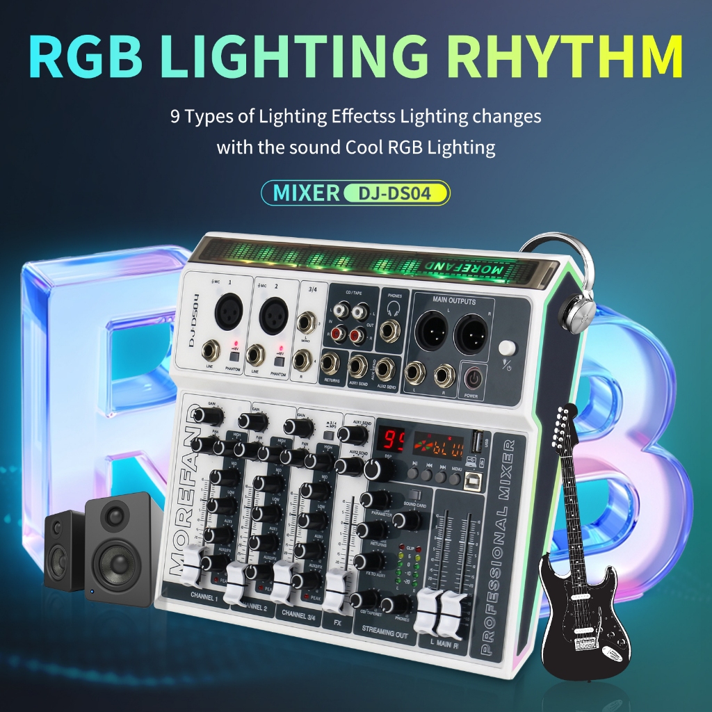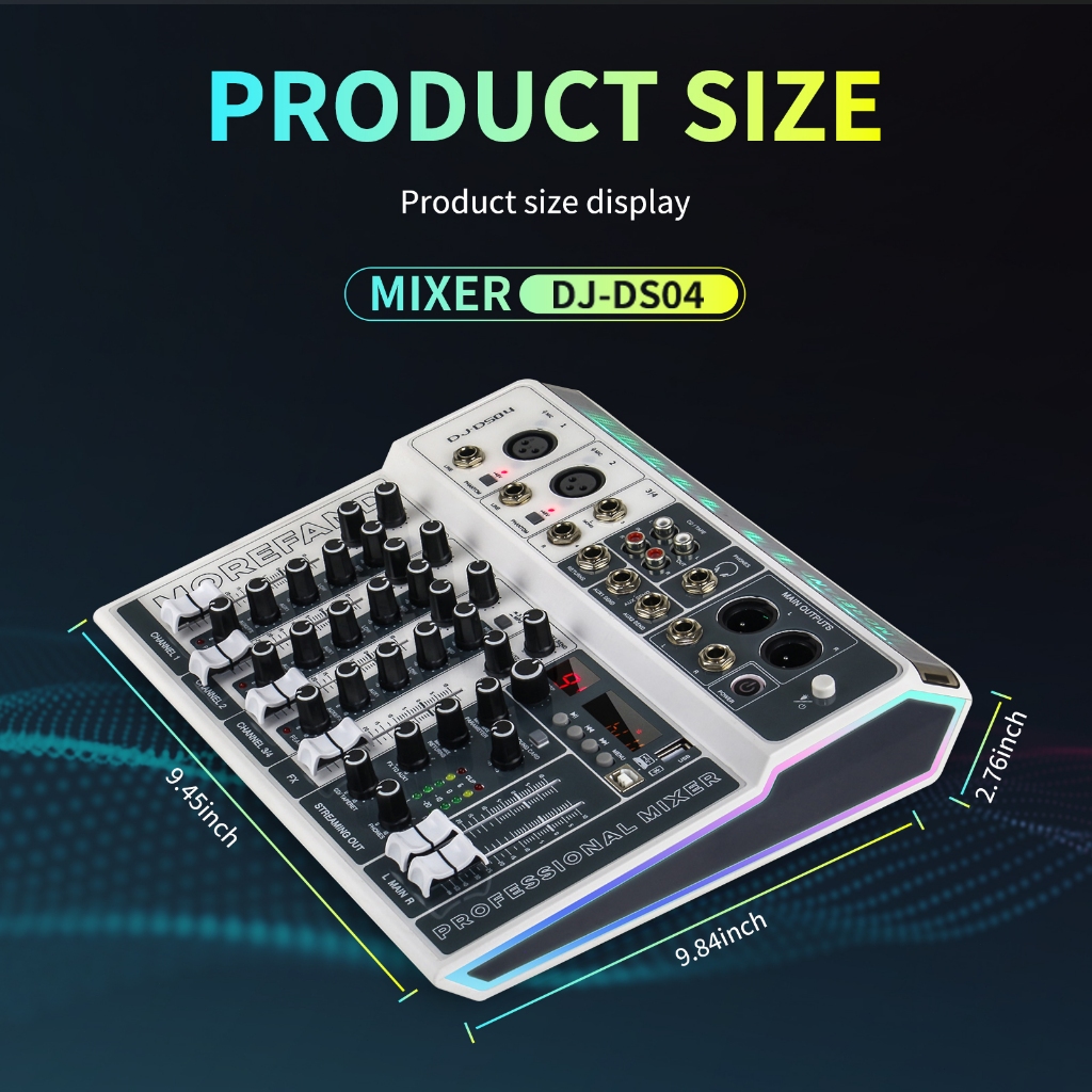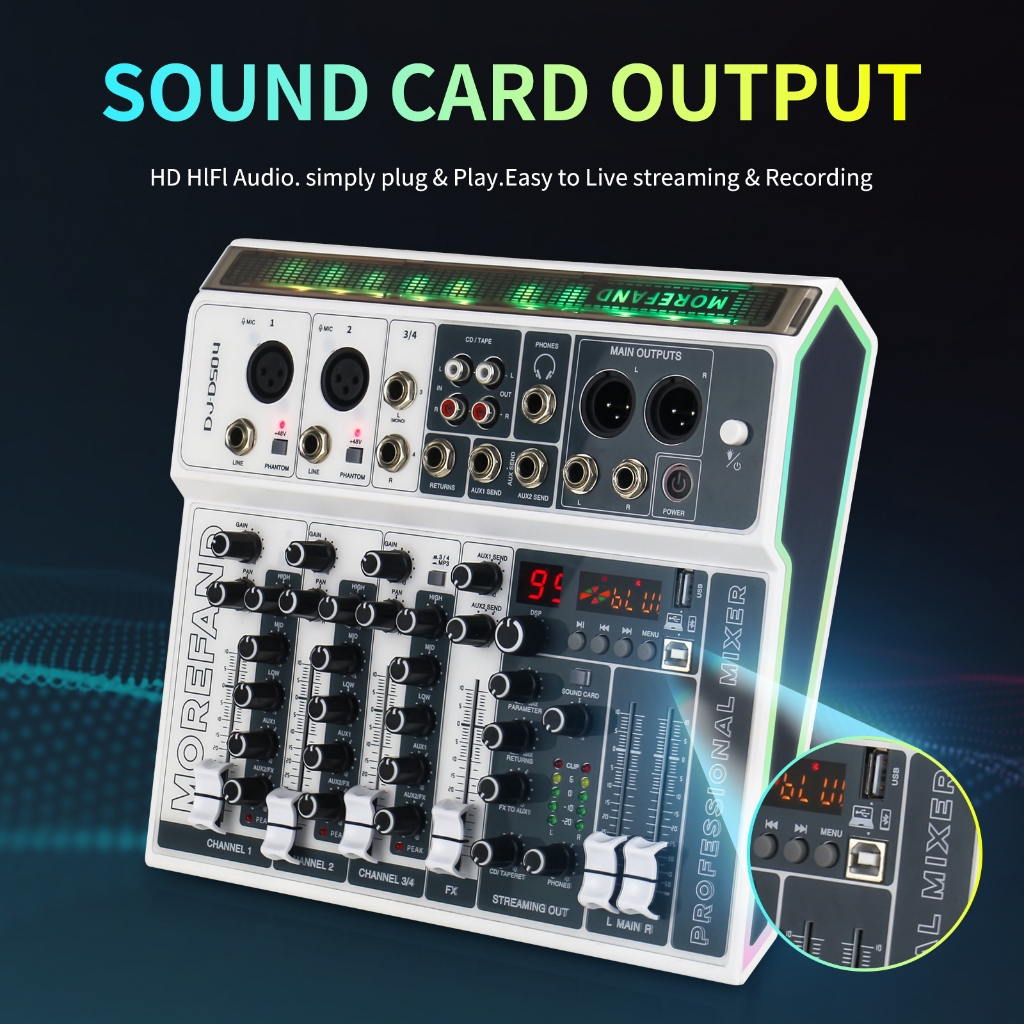 MOREFAN DJ-DS04 Professional Audio Mixer 4-channel built-in 99DSP Suport bluetooth Power amplifier