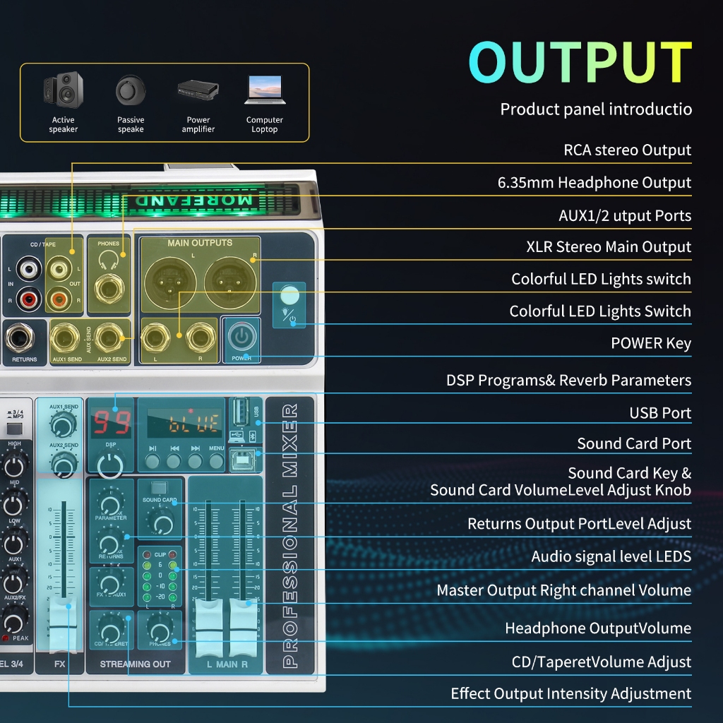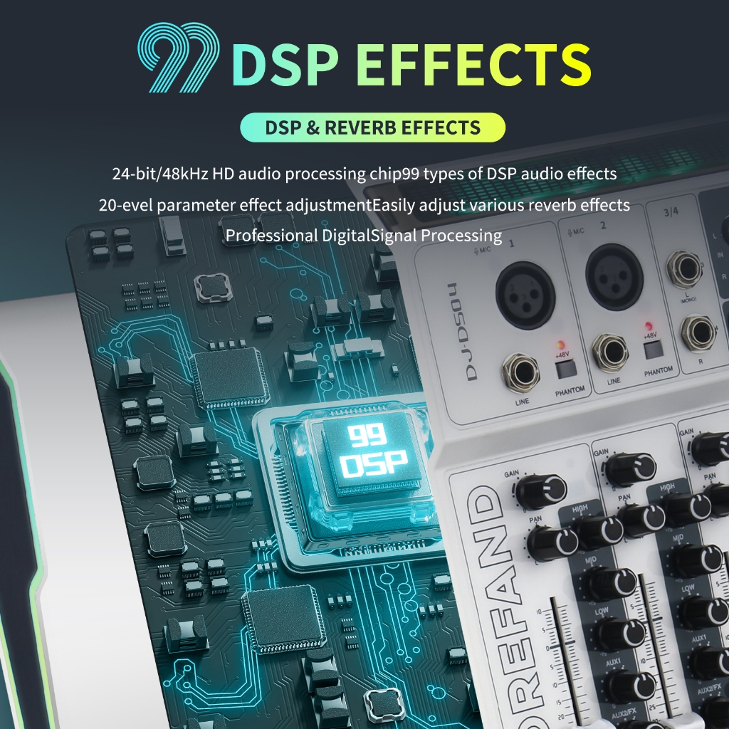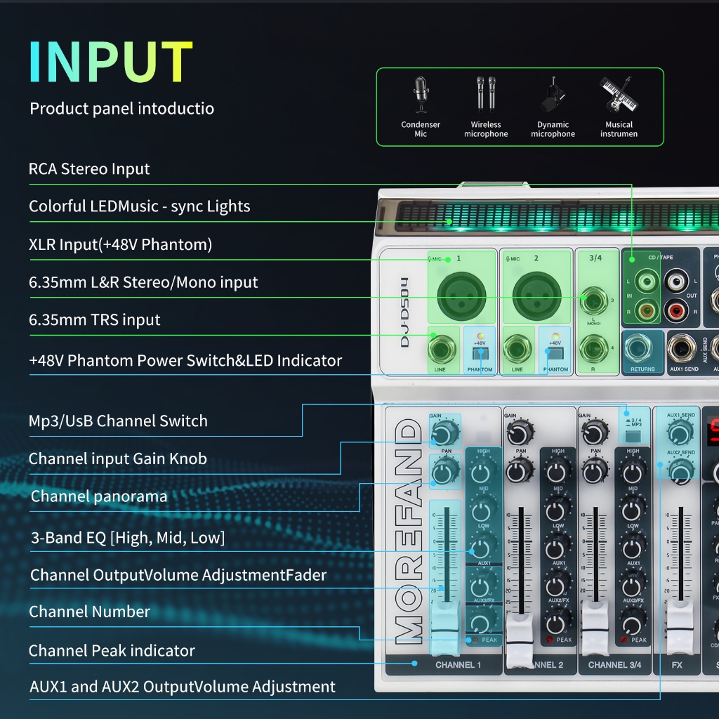 MOREFAN DJ-DS04 Professional Audio Mixer 4-channel built-in 99DSP Suport bluetooth Power amplifier