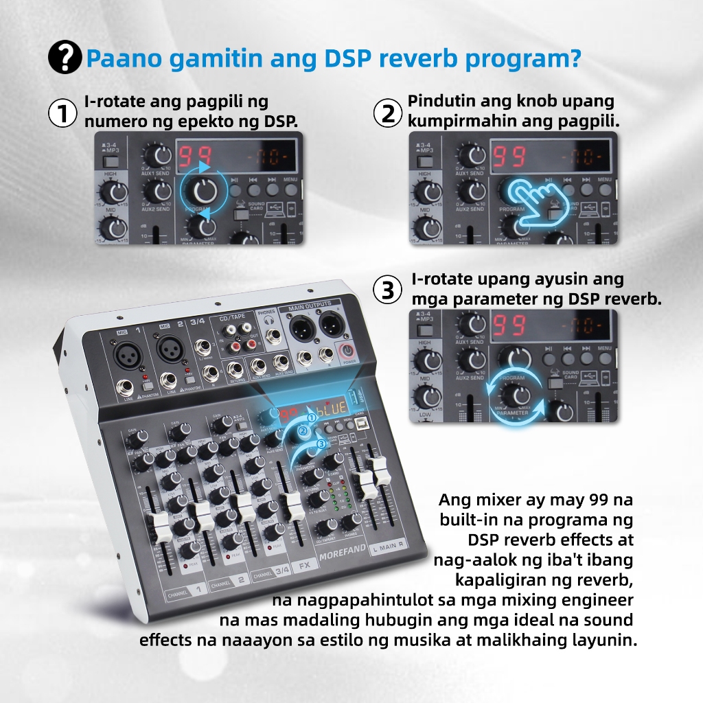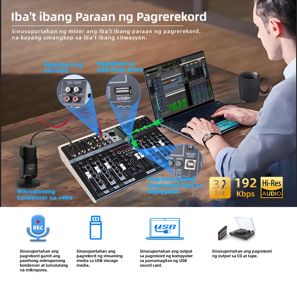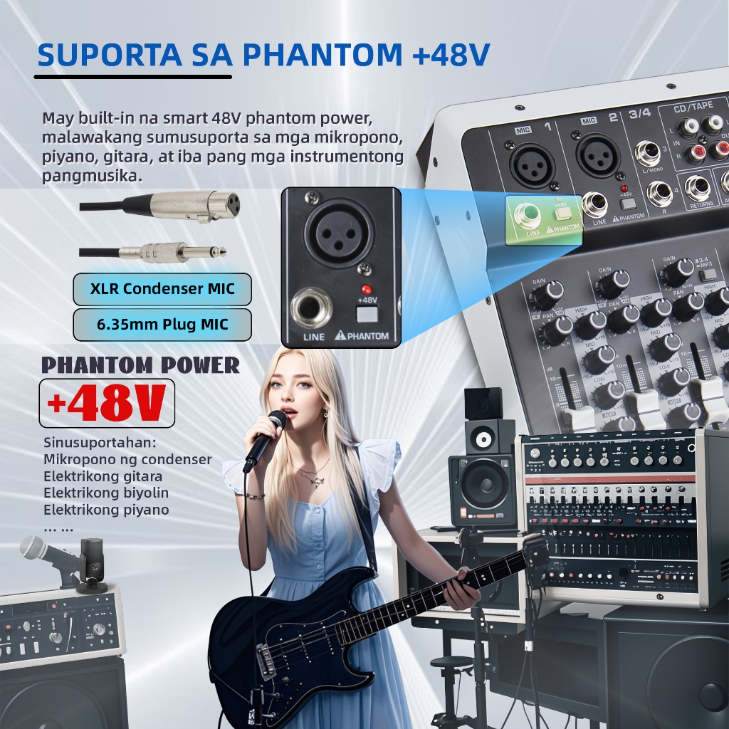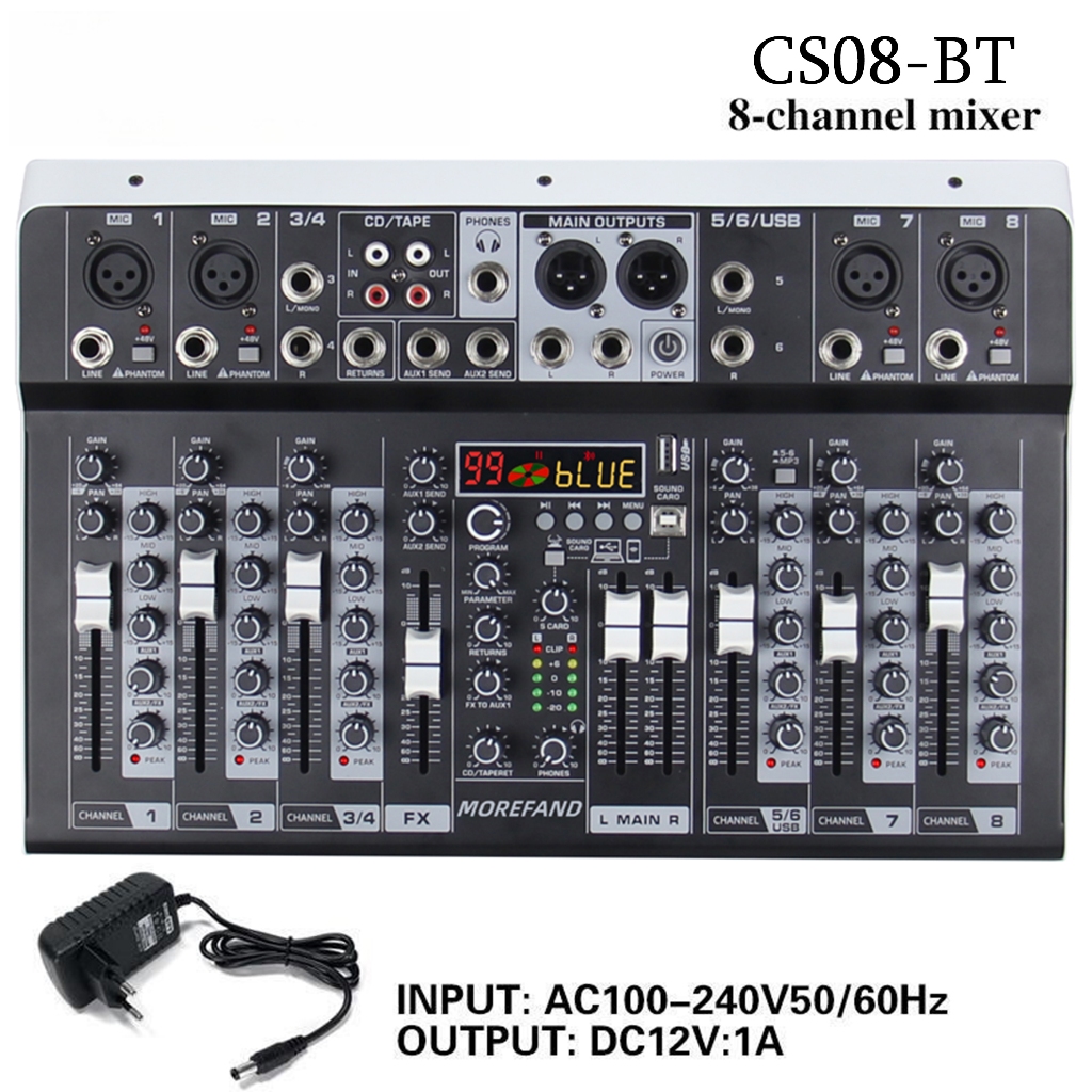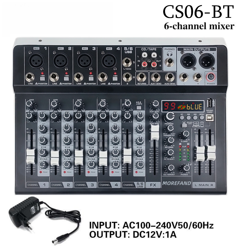 CS4/6/8 Audio mixer 4/6/8 channel computer recording KTV power amplifier household reverberation