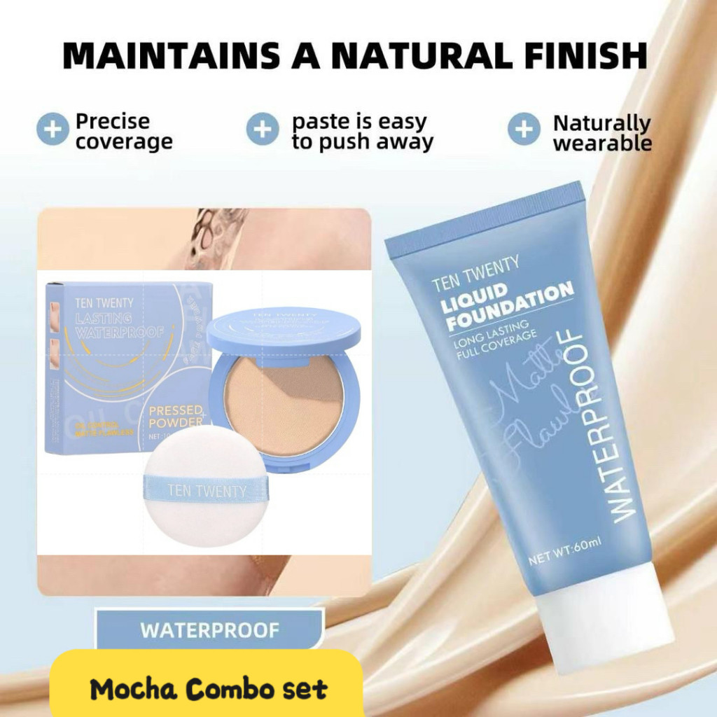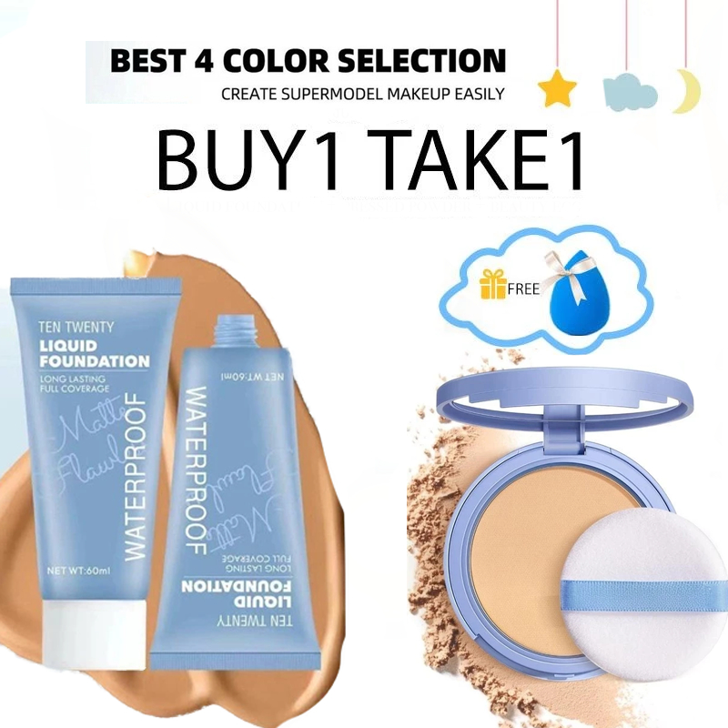 Buy 1 take 1 matte flawless waterproof liquid foundation & lasing oil control face pressed powder