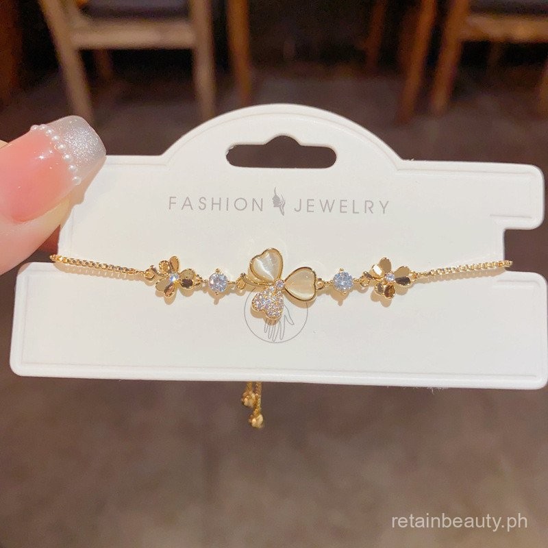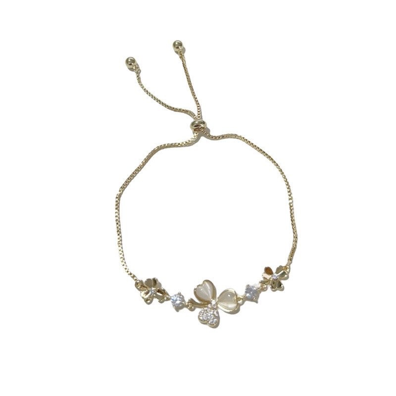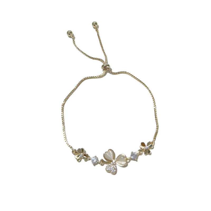 Cat's Eye Stone Niche High-end Bracelet Jewelry Flower Petal Light Luxury Zircon Flower Design Sense Versatile Japanese and Korean Style