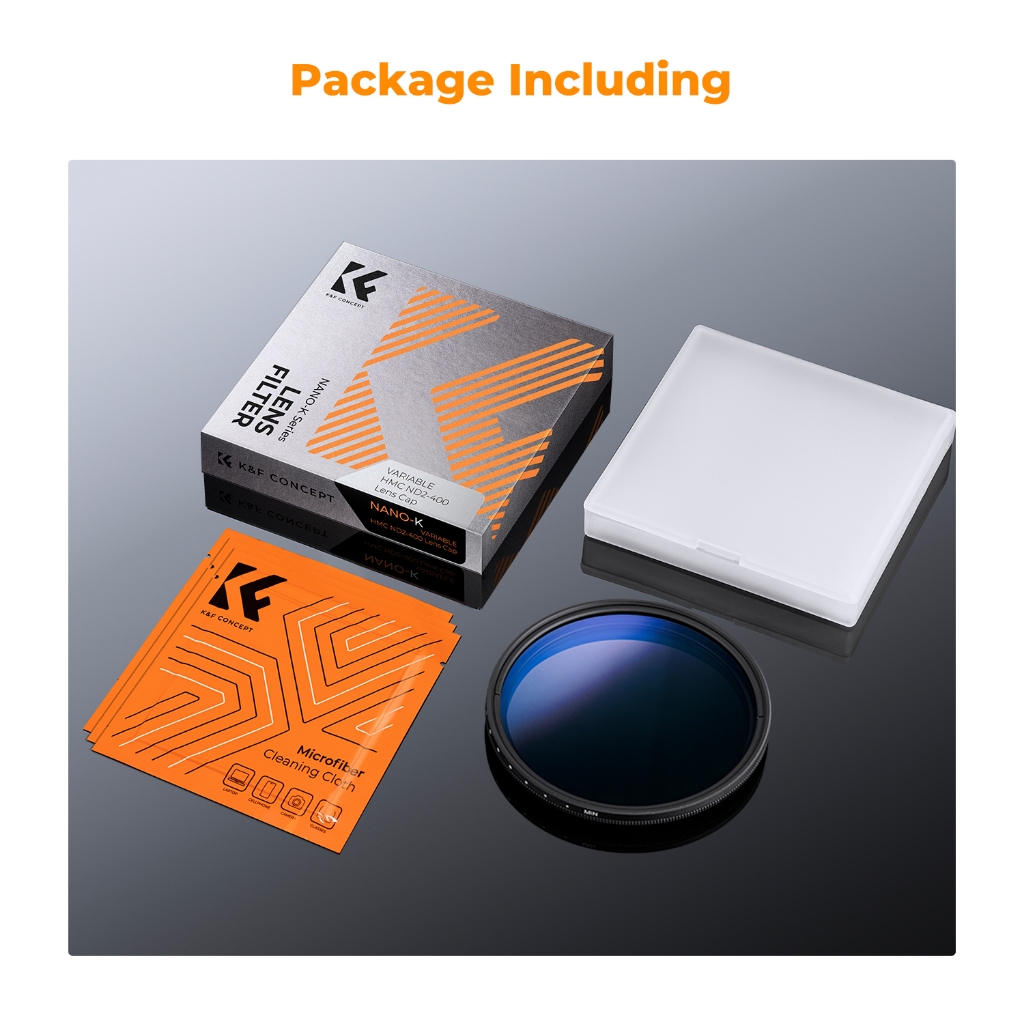 K&F CONCEPT NANO-K 52mm ND2-400 Variable ND Filter with Blue Coating&3 Cleaning Cloths No X-pattern