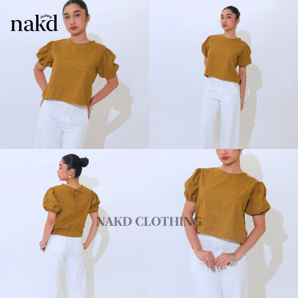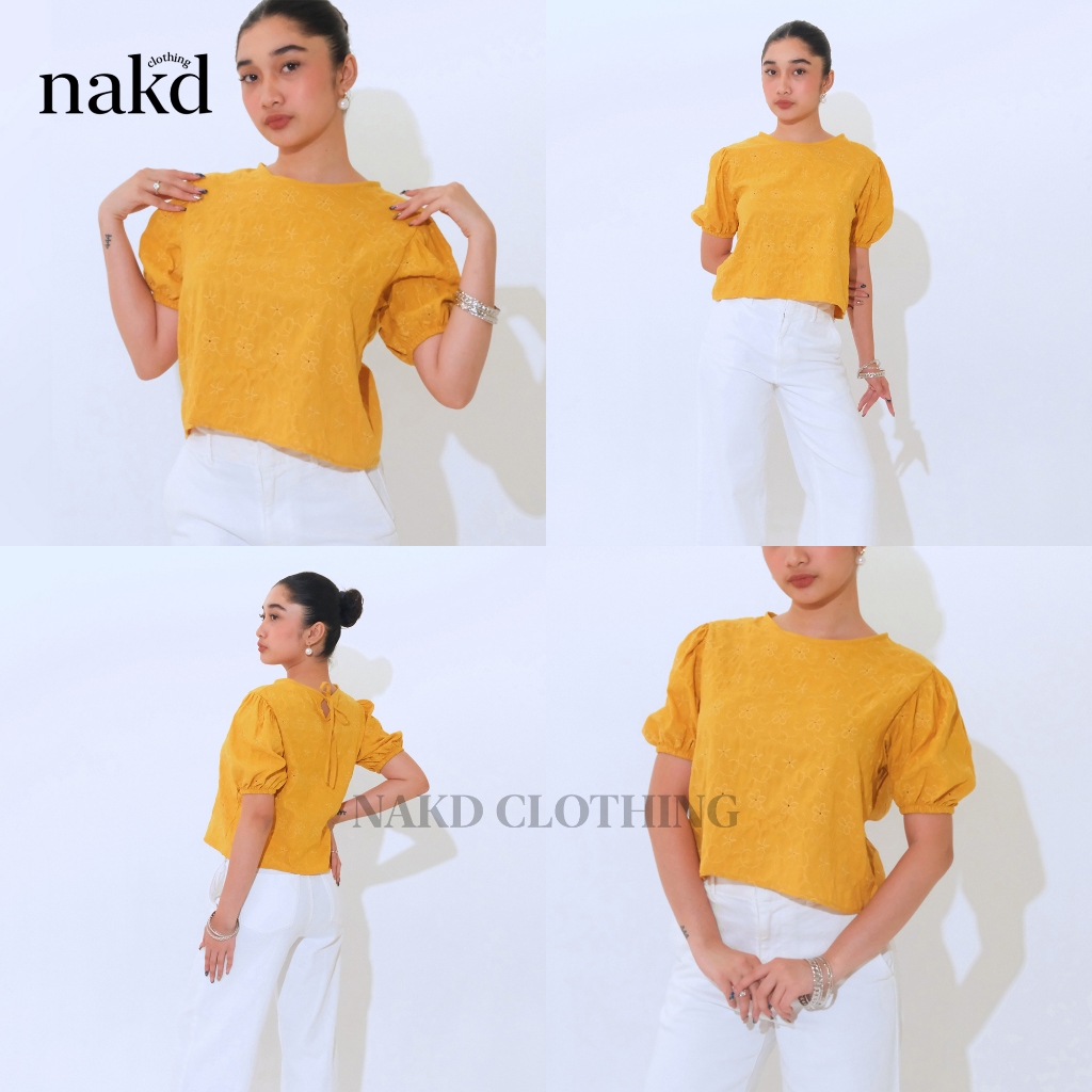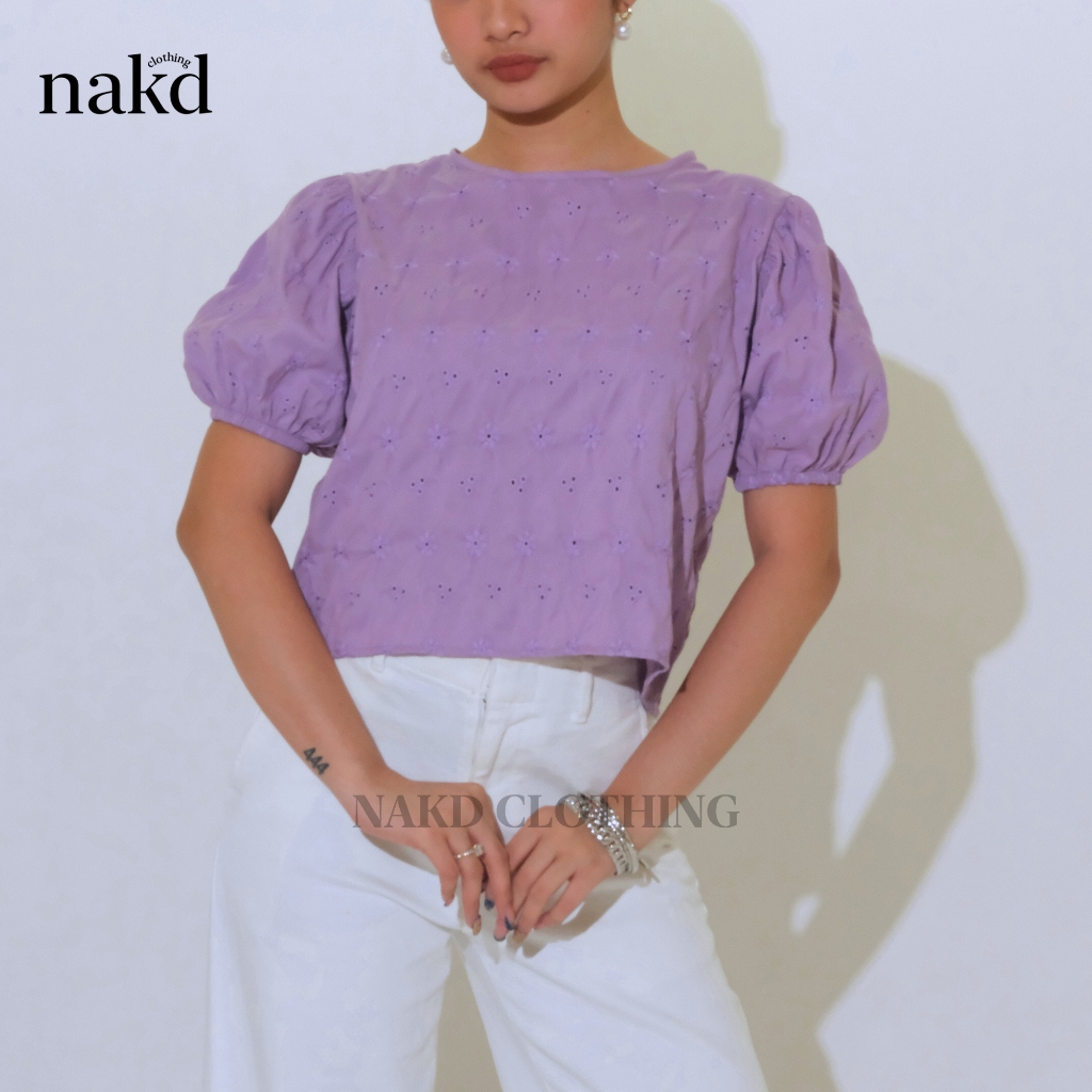 NAKD FASHION CHERRIE EYELET BASIC PUFF SLEEVES DAILY CASUAL SQUARE TOP FOR WOMEN 1750