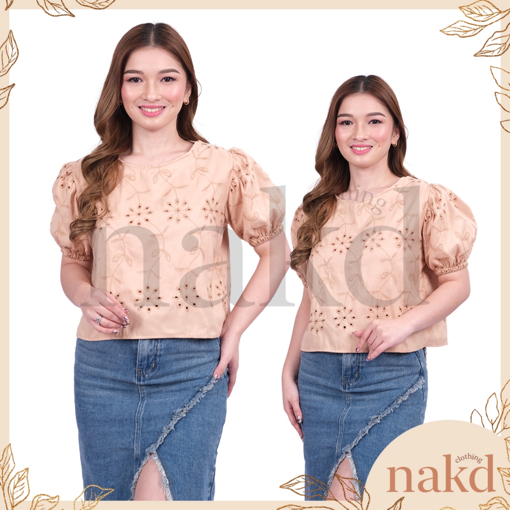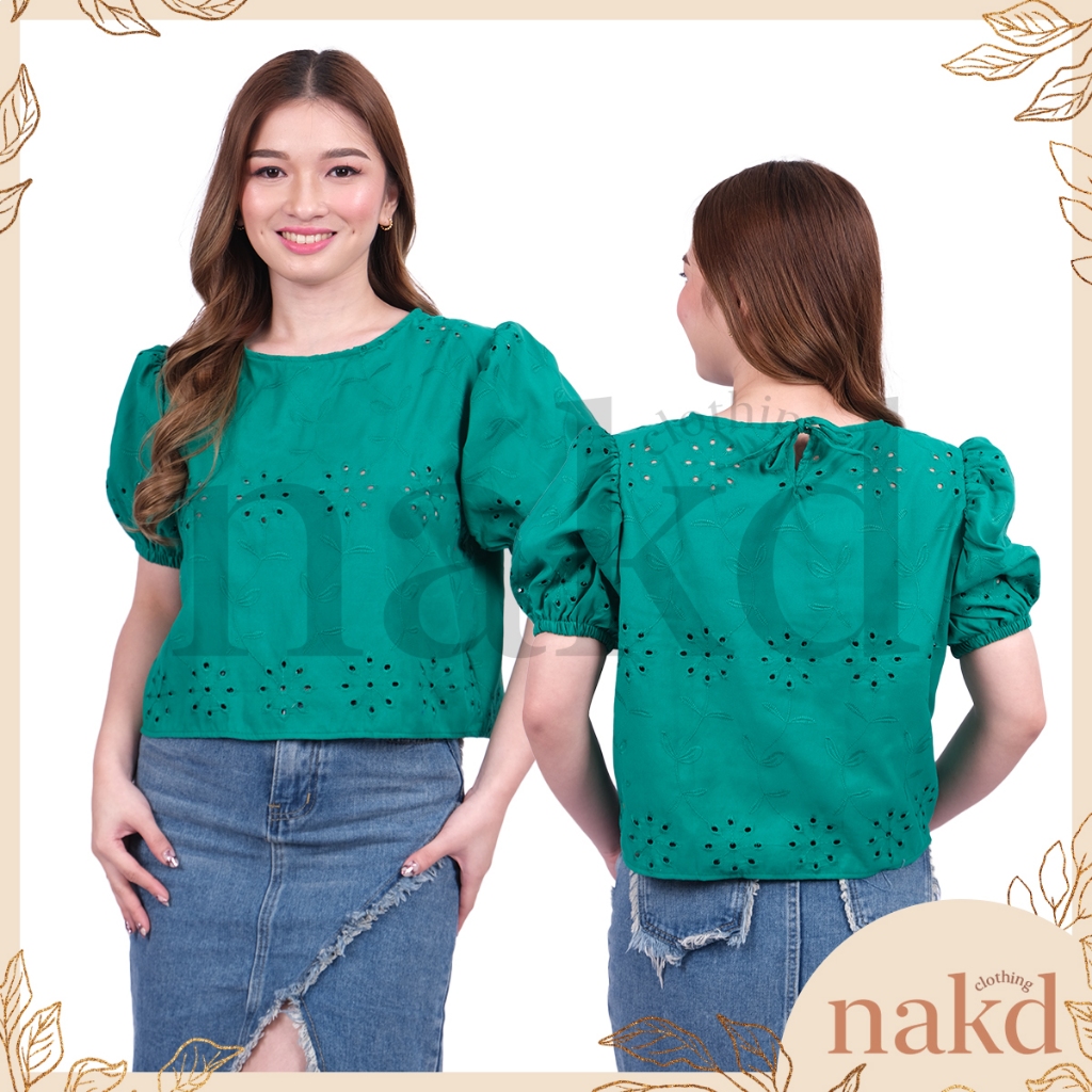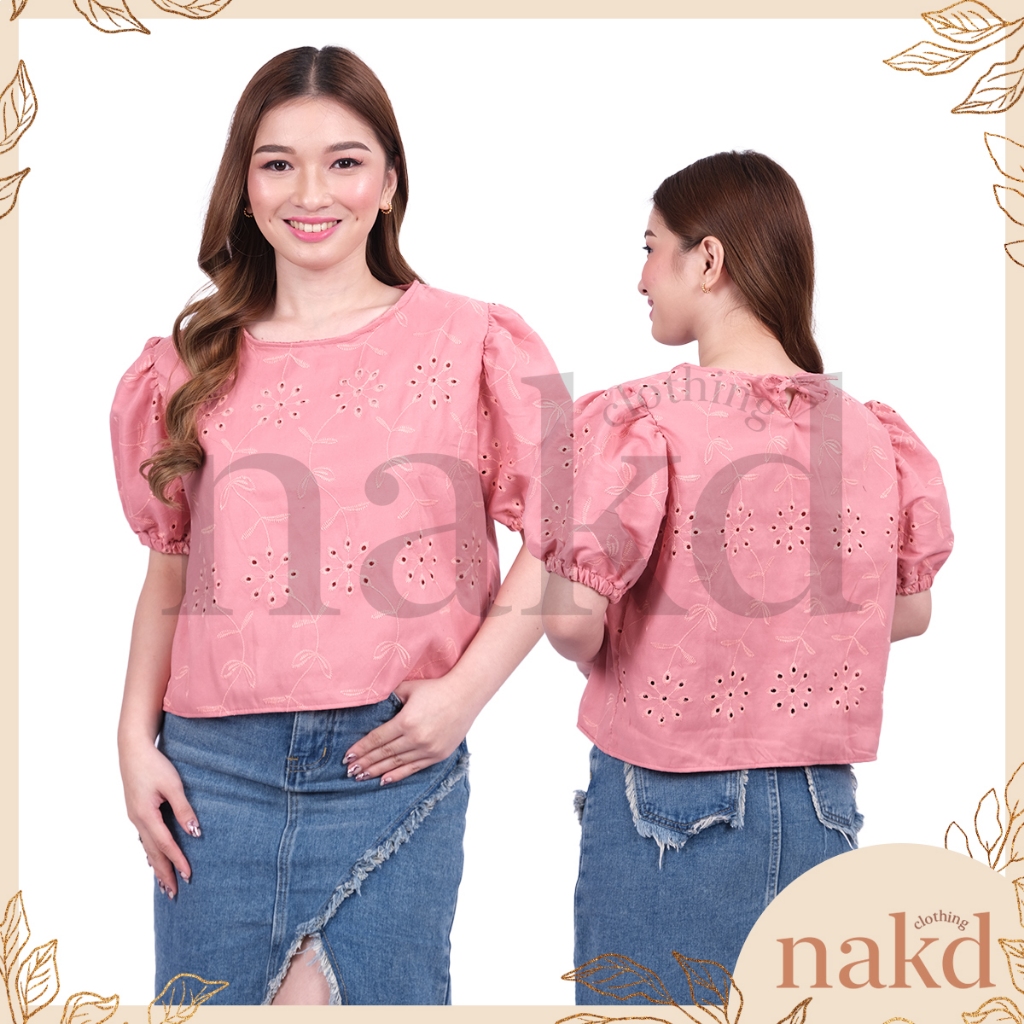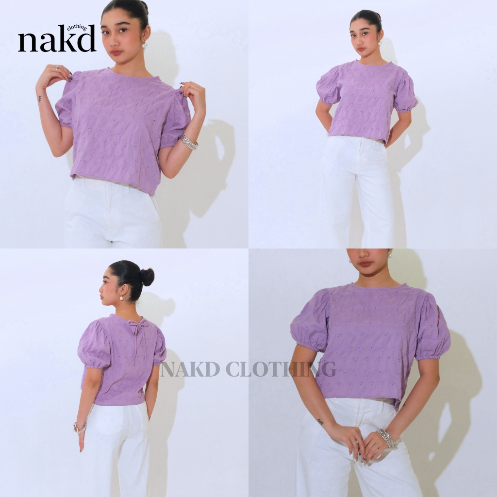 NAKD FASHION CHERRIE EYELET BASIC PUFF SLEEVES DAILY CASUAL SQUARE TOP FOR WOMEN 1750
