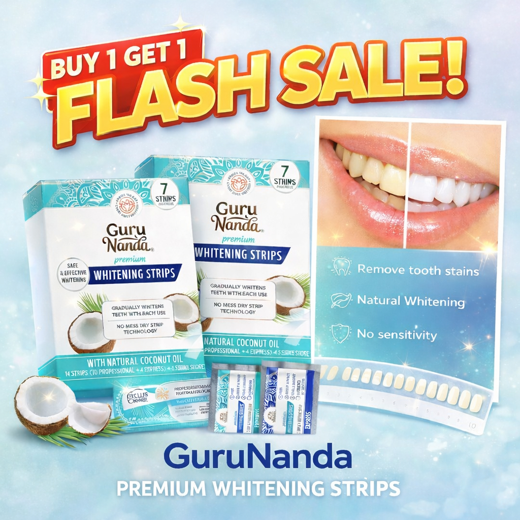 BUY 1 GET 1 GuruNanda Teeth Whitening Strips-7 Day Care with No-Slip, Dry Strip Technology-Whitening