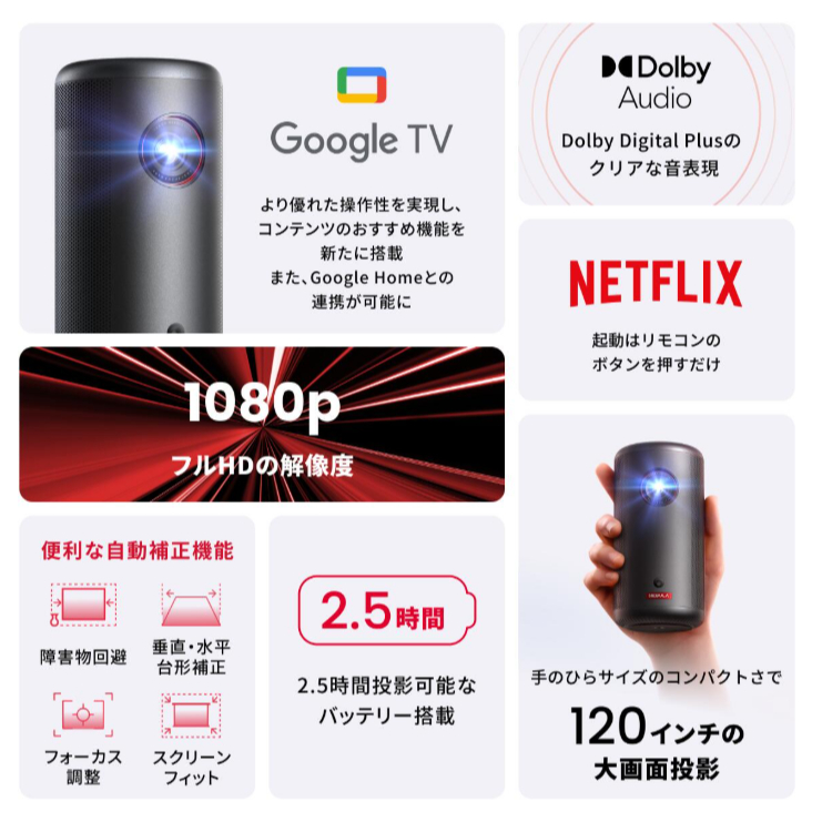 (BIG SALE) Anker Nebula Capsule 3 (Mobile projector with Google TV) [Full HD / 200 ANSI lumens / Maximum 120 inches / 8W speaker / Automatic obstacle avoidance / Vertical and horizontal keystone