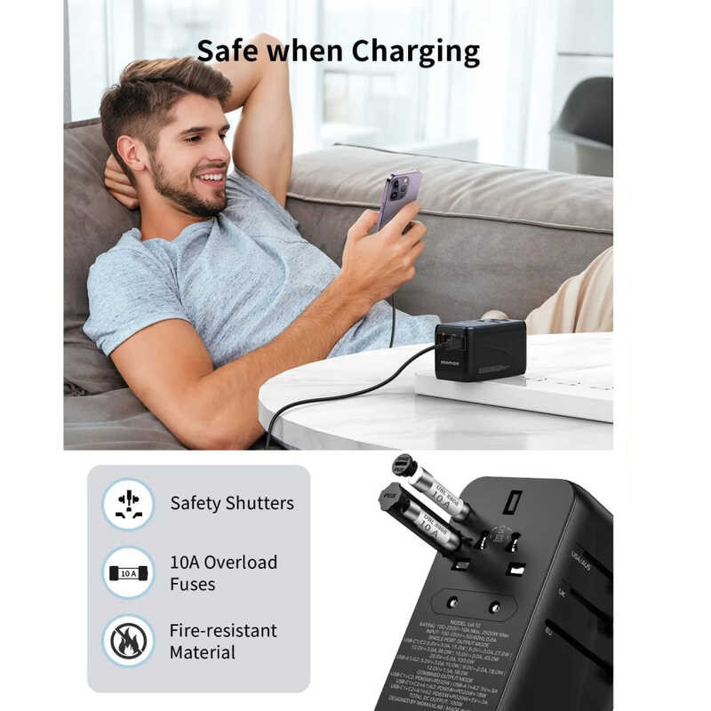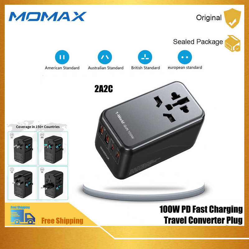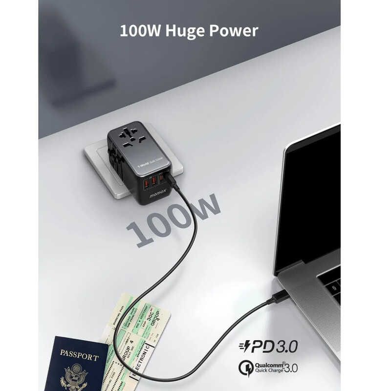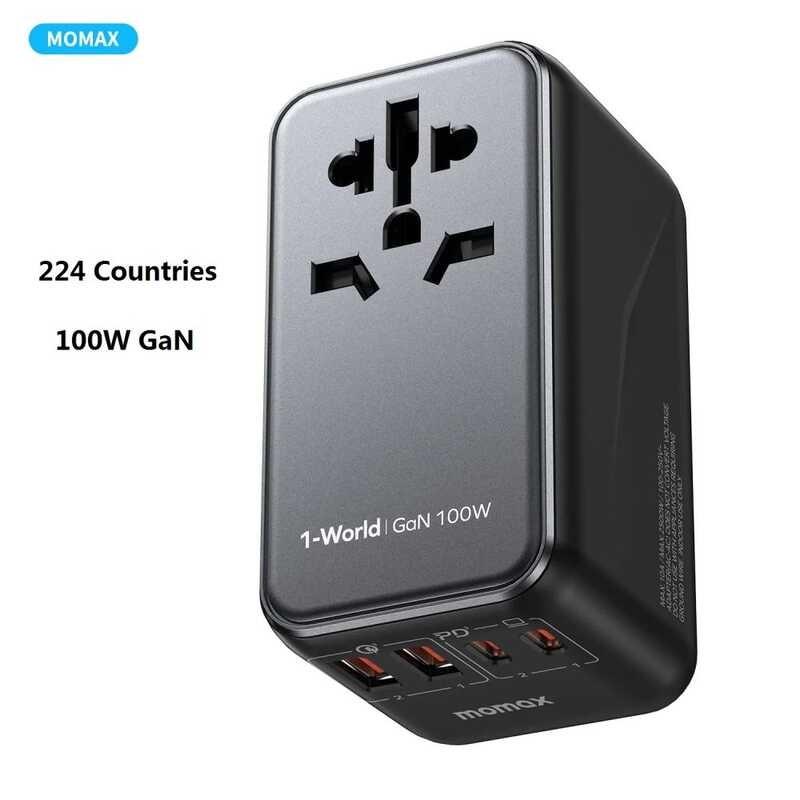 MOMAX 100W PD GaN Fast Charge Travel Plug Global Power Converter Socket UK European US Australian