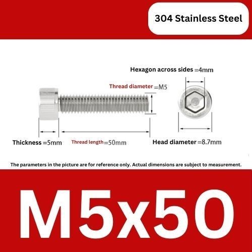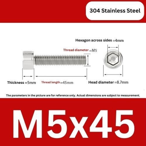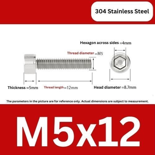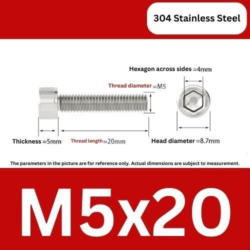 (5PCS) M5 Allen Bolt Stainless Steel 5mm Thread Hex Socket Head Cap Screw Bolts / Nuts