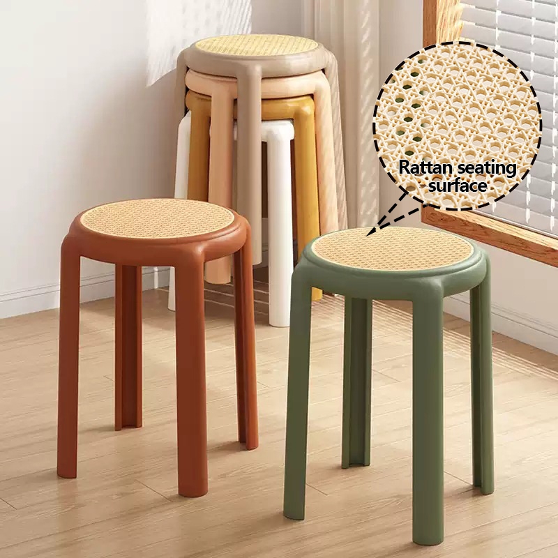 Stackable Plastic Stools Plastic Round Stools Rattan Home Chairs Living Room Dining Chairs