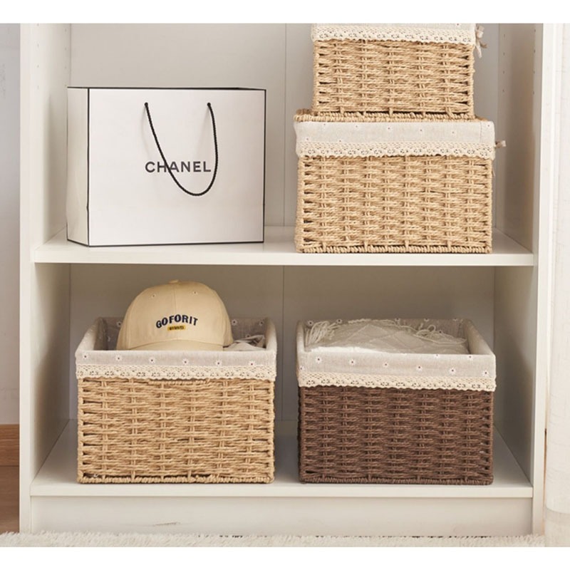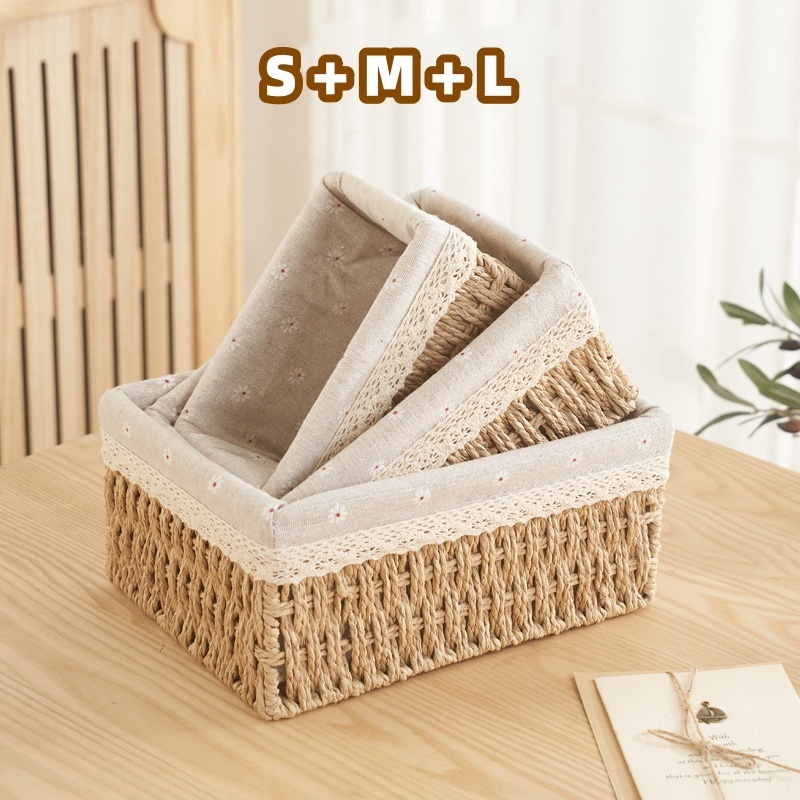 Nordic Rattan Storage Basket Hand-knitted Storage Box Tabletop Clutter Storage Snack Storage Box