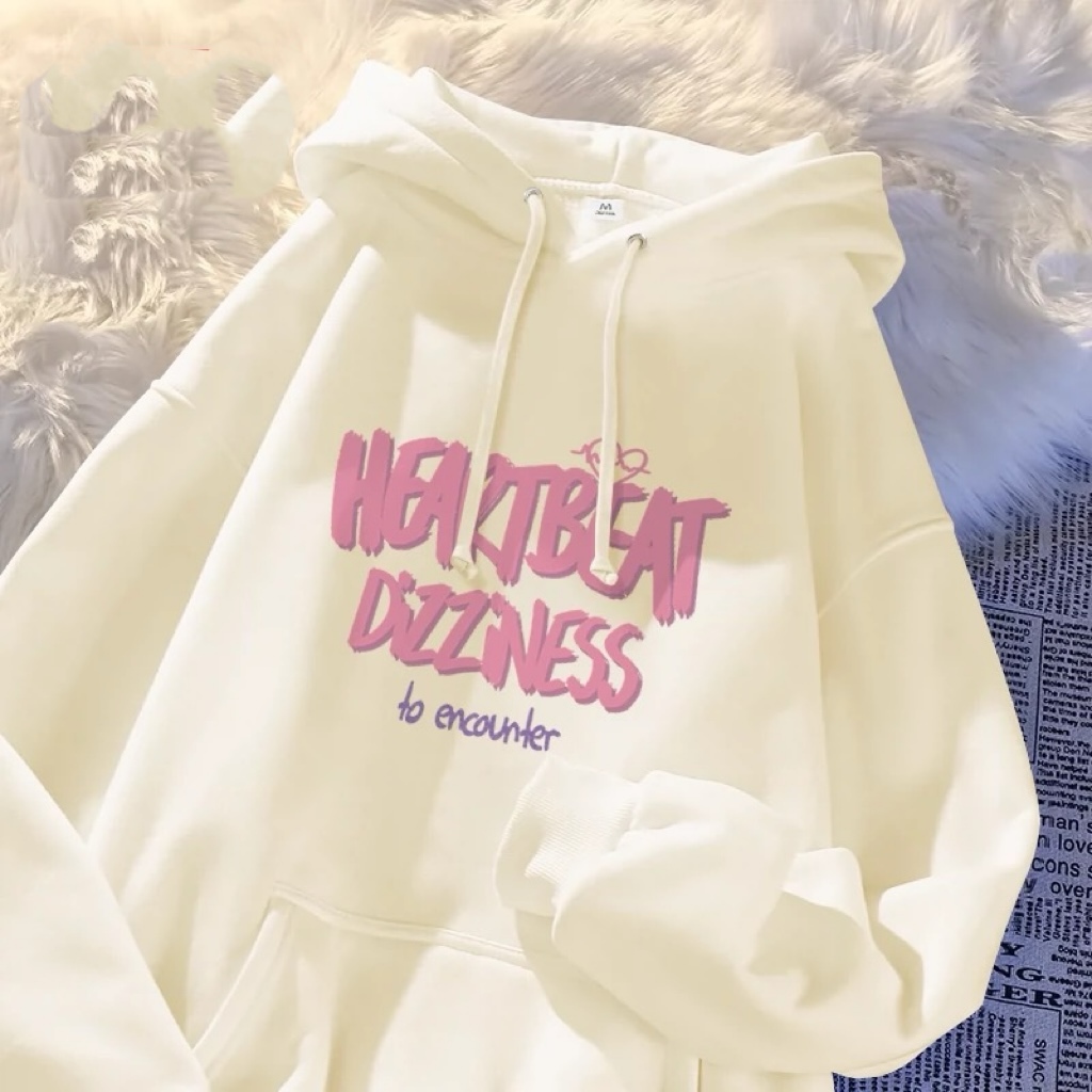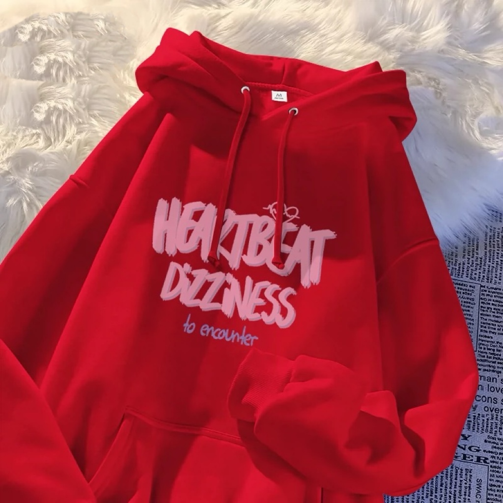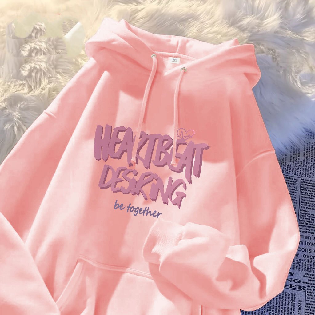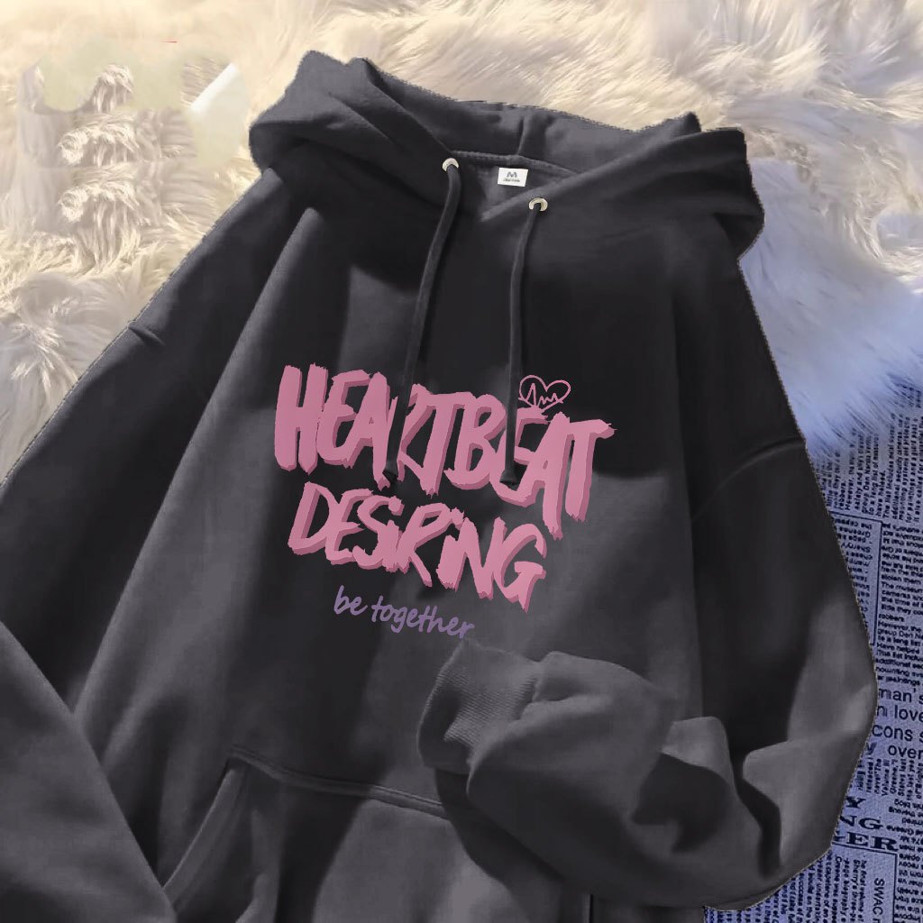 Hoodies For Women HEARTBEAT Casual Hoody Jacket Cotton Jacket For Women&Men Oversize Pullover Hoodie