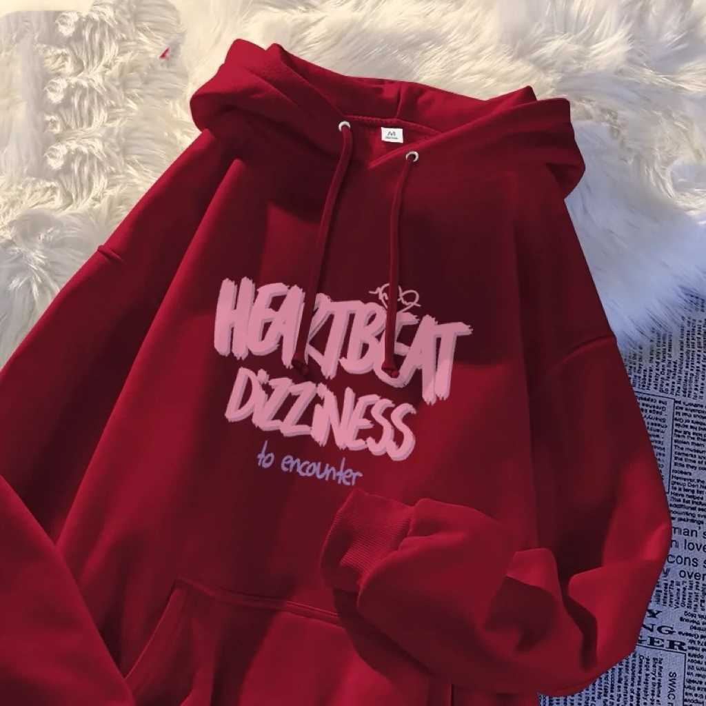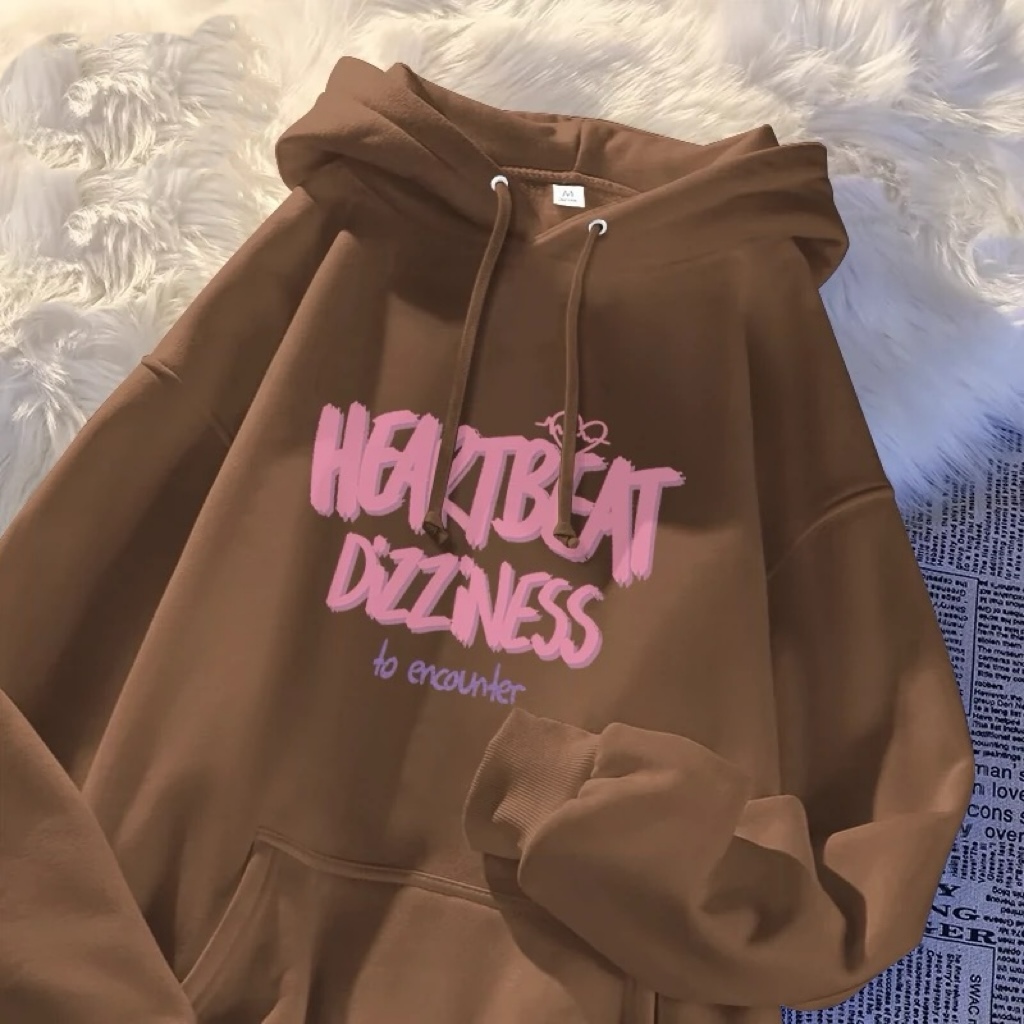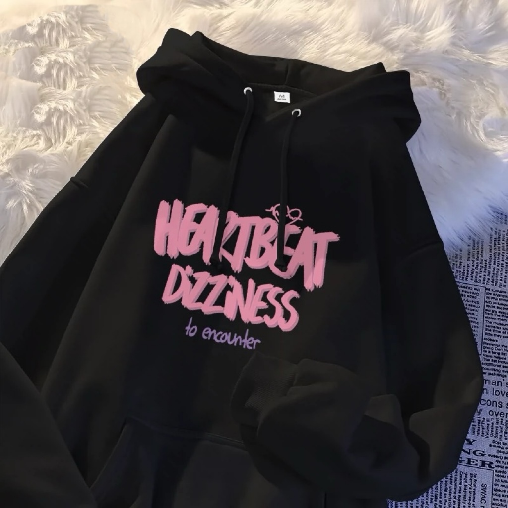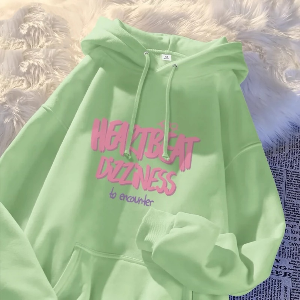 Hoodies For Women HEARTBEAT Casual Hoody Jacket Cotton Jacket For Women&Men Oversize Pullover Hoodie