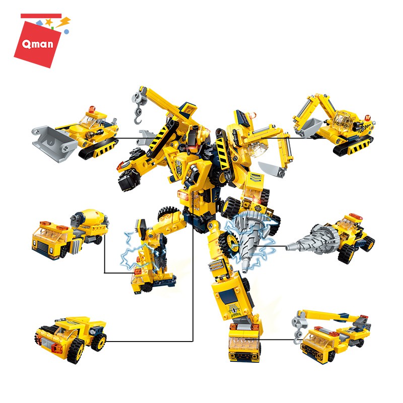QMAN Building Blocks Engineering Mecha Trans Collector Set 6-in-1 Playset Building Blocks Bricks