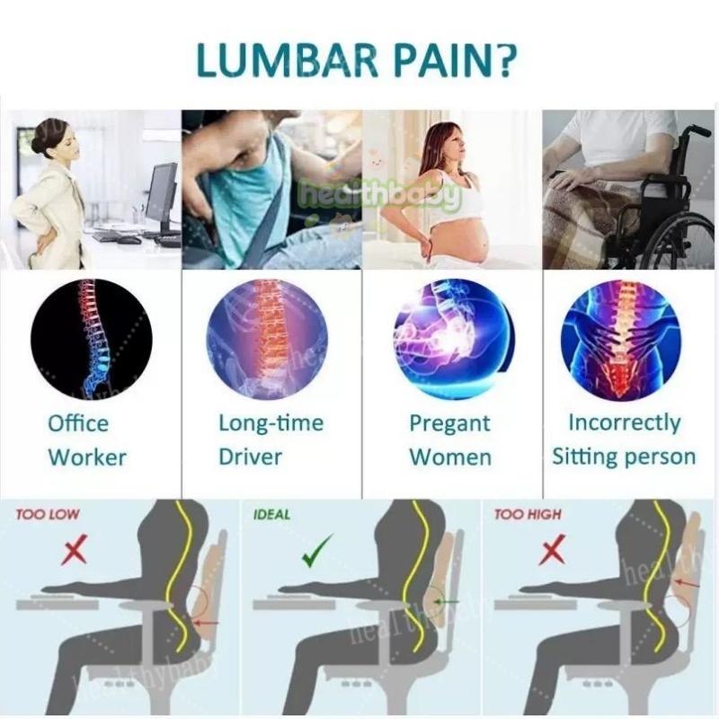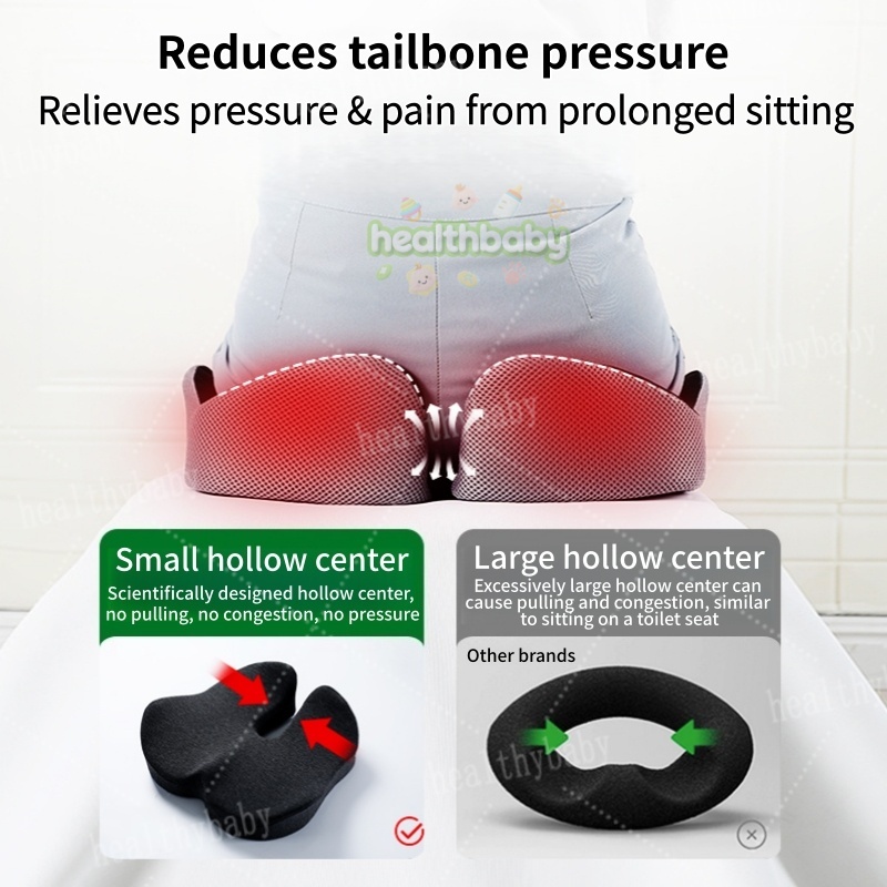 Comfort Seat Cushion for Office Chair/Car - Premium Memory Foam Ergo Pain Relief Pillow for Tailbone