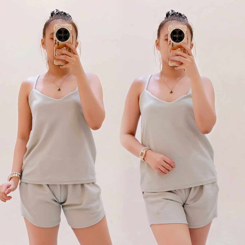 D&C-Crepe women's sleeveless top Terno short double pocket coordinated comfortable basic