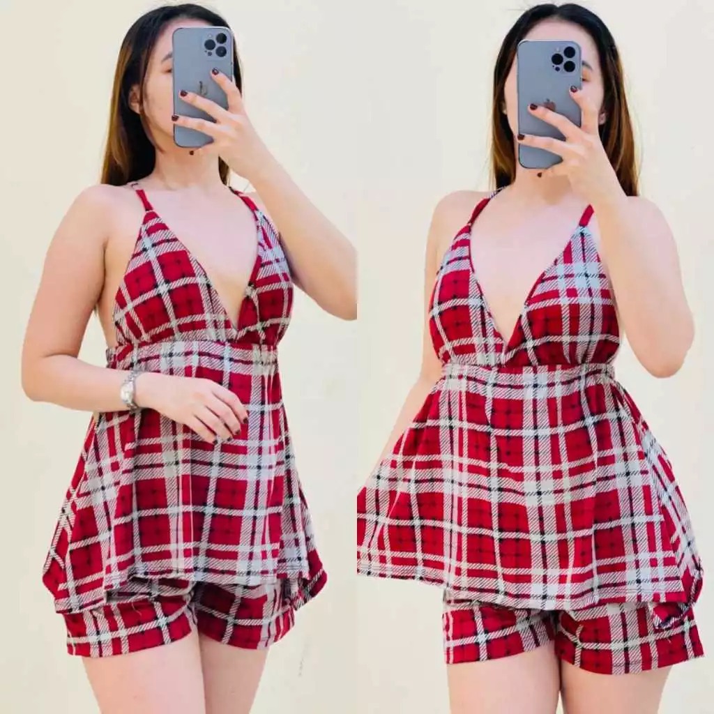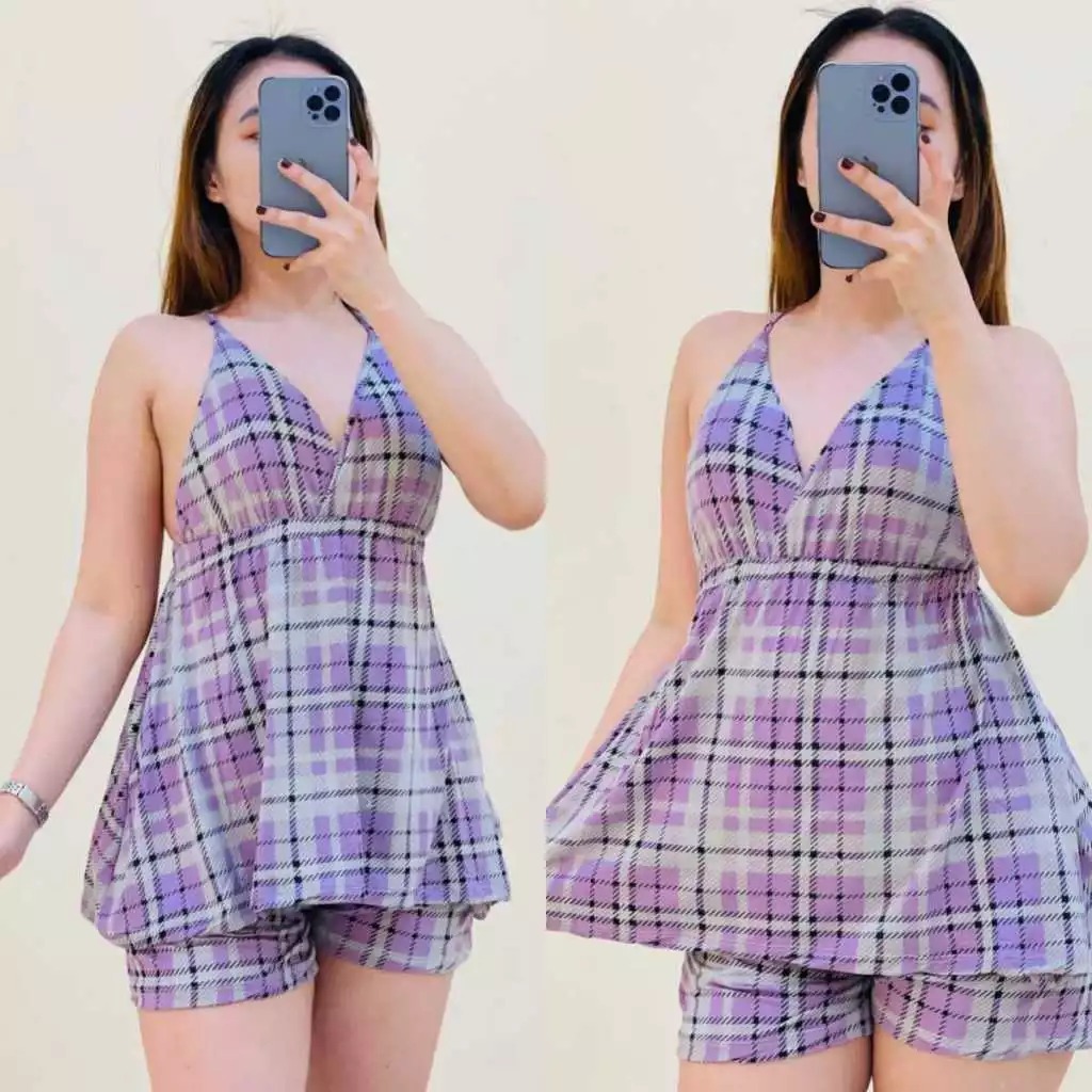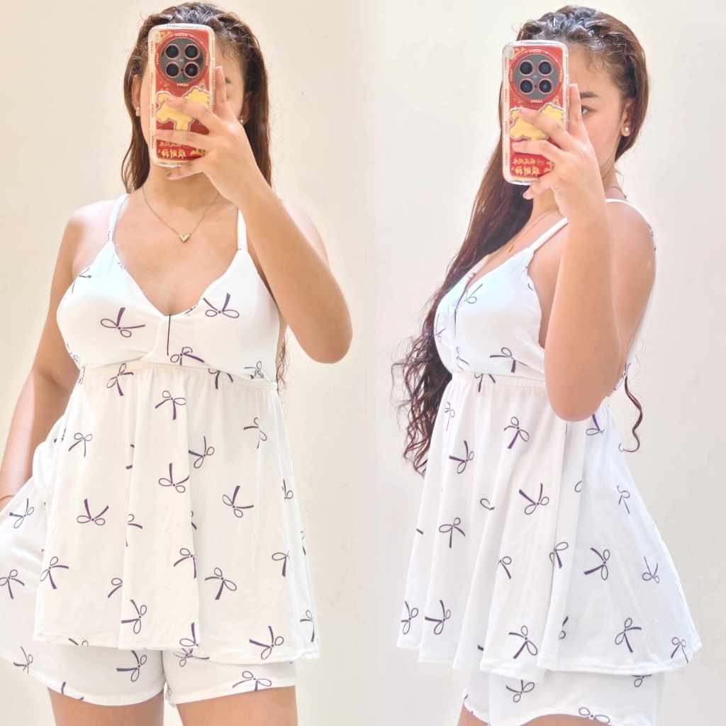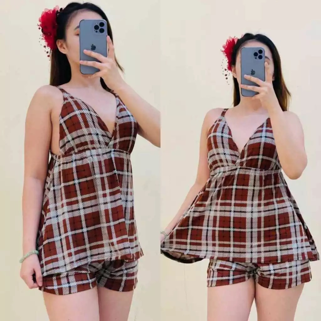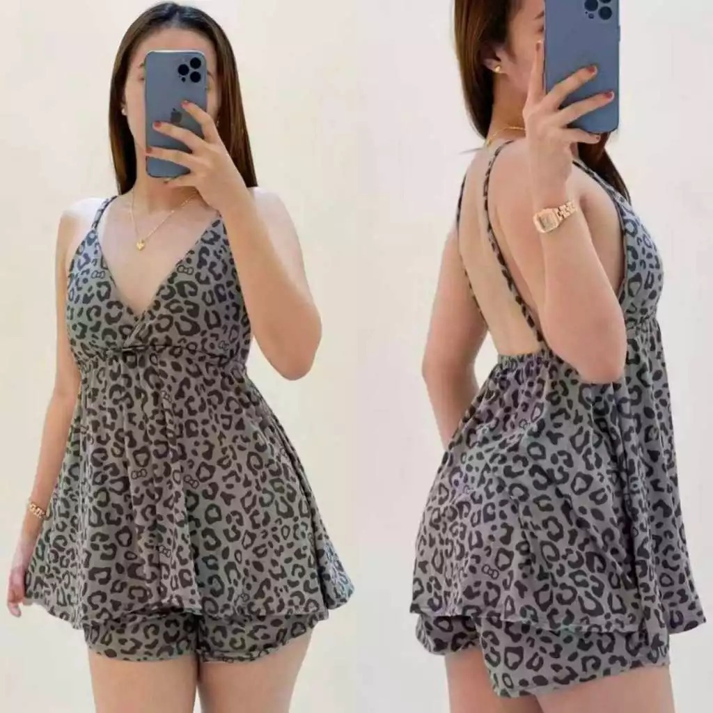 D&C-Cotton Spandex Terno Floral Spaghetti V-Neck With chest pad Top and Shor