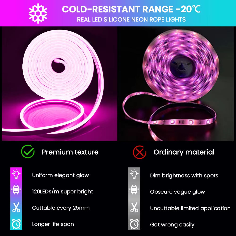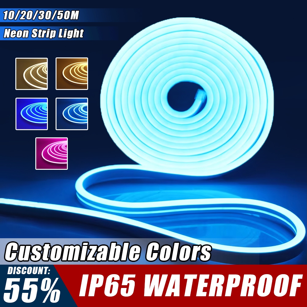 10/20/30/50M LED Neon Strip Light Flexible Waterproof IP67 Bendable Living Room Bedroom Decoration