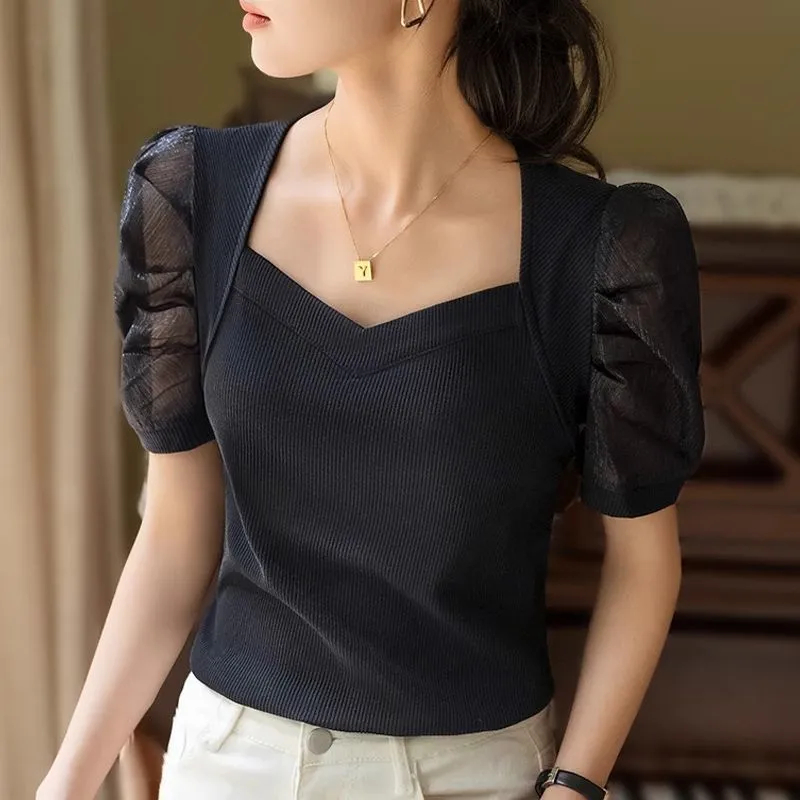 CICI Women's T-shirt New Small Shirt Stitching Temperament V-neck Women's Ice Silk Top