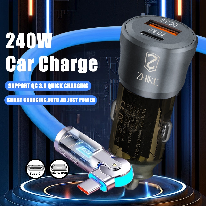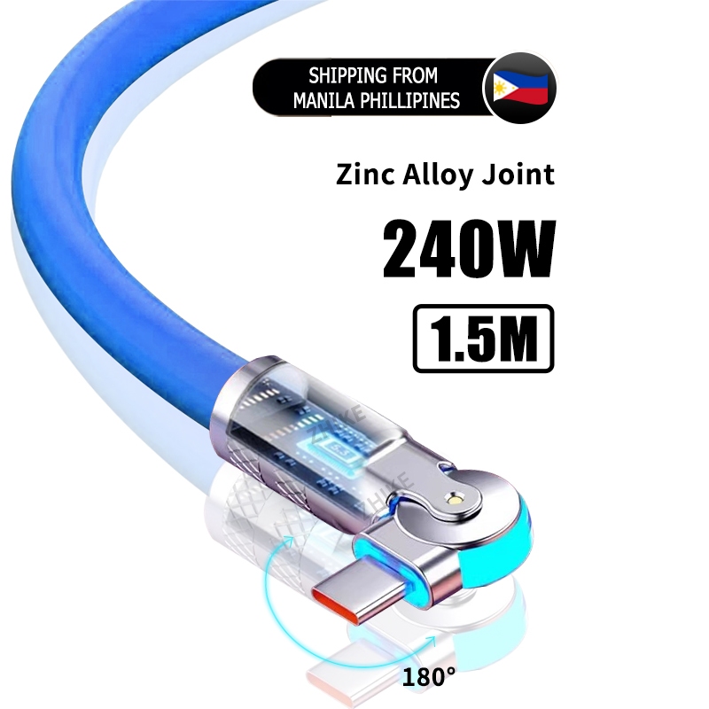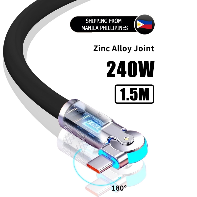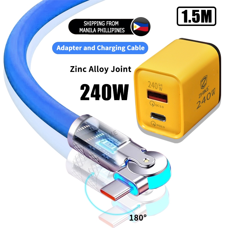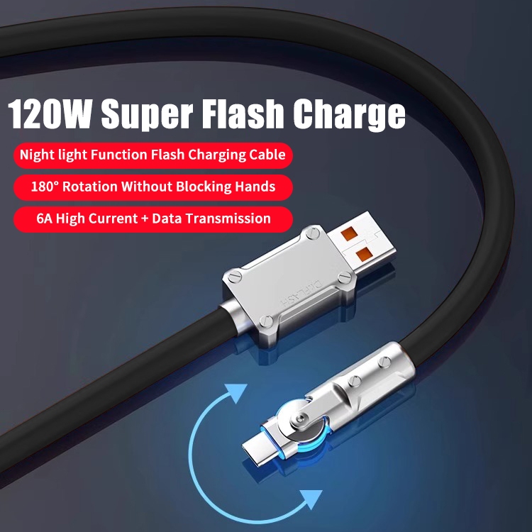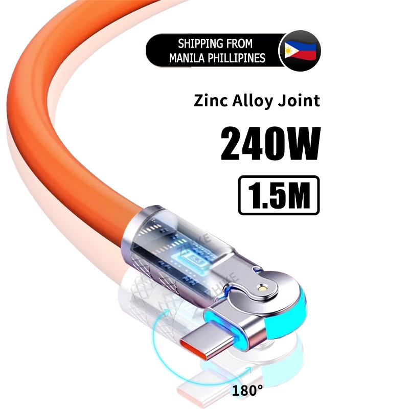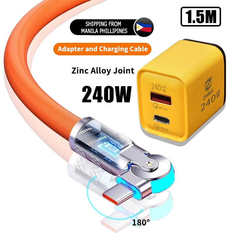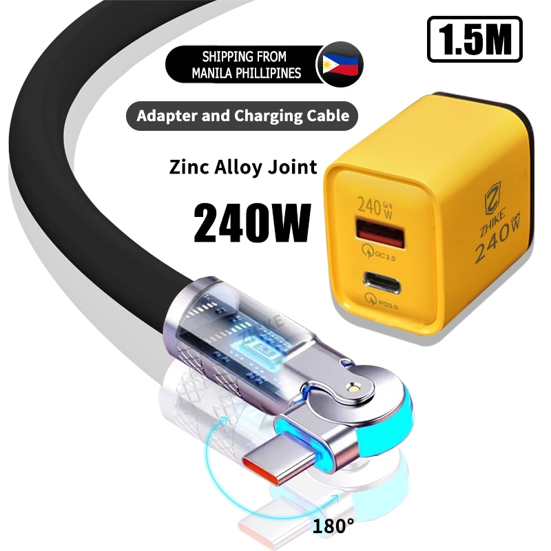 ZHIKE Charger for Android Type C Micro USB 120 Watts 180° Rotation 1.5M Data Cable Fast Charging with 180W Adaptor 240W Smart Phone Silicone Stain-Resistant Compatible with OPPO