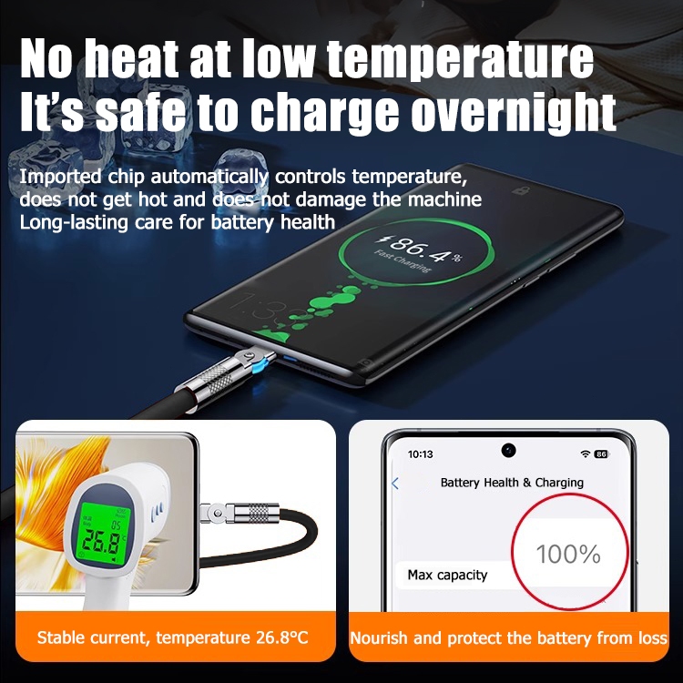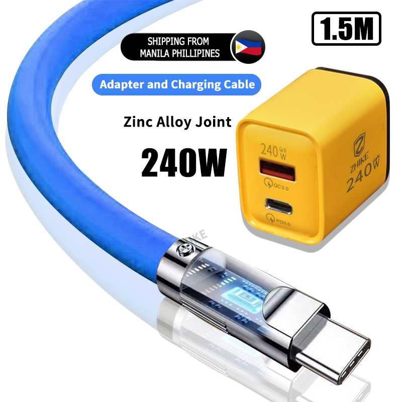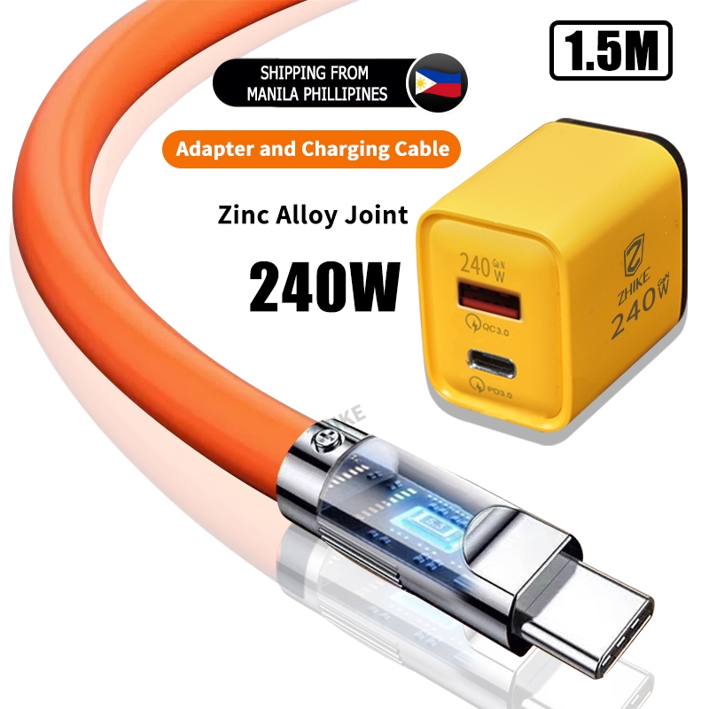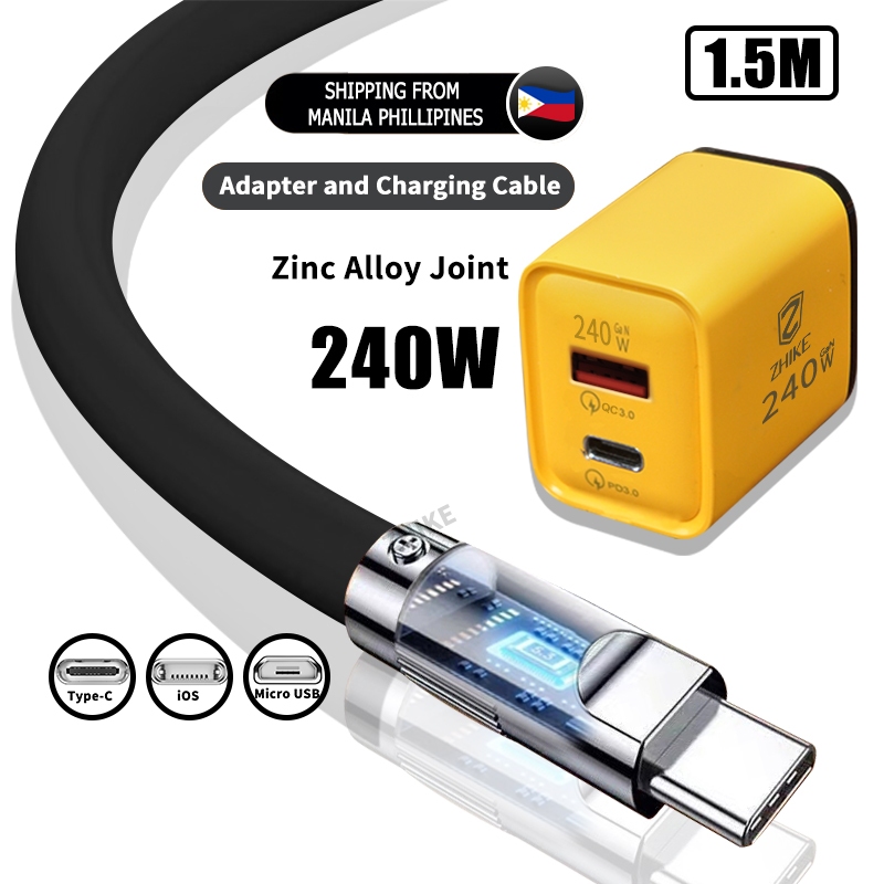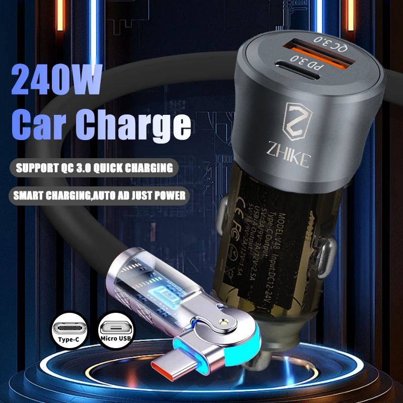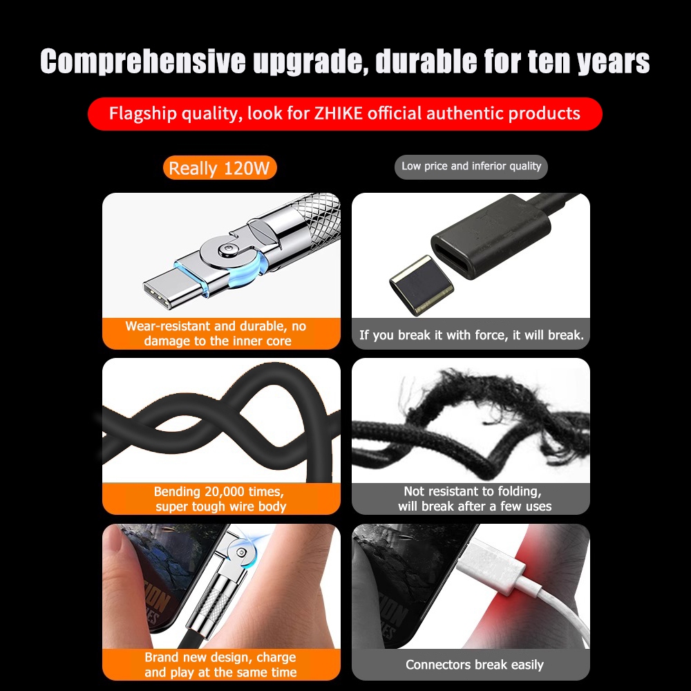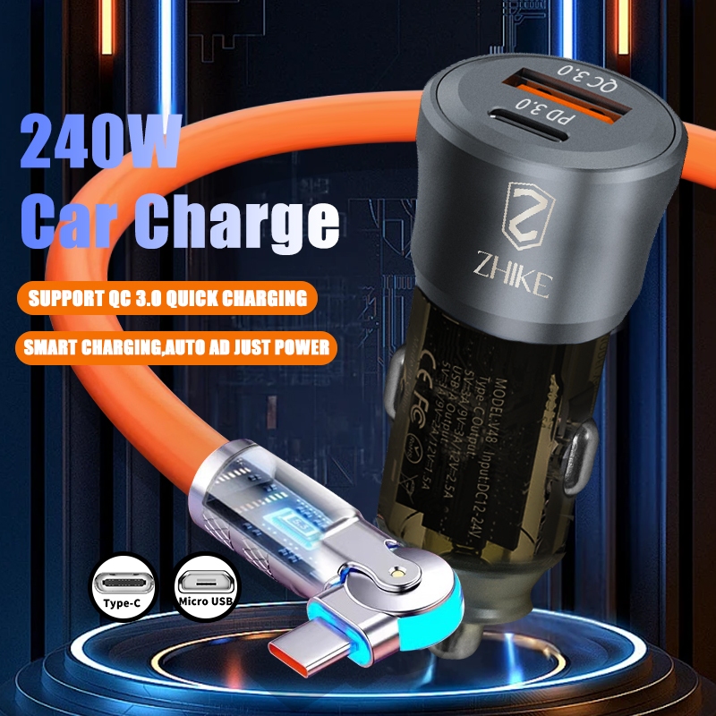 ZHIKE Charger for Android Type C Micro USB 120 Watts 180° Rotation 1.5M Data Cable Fast Charging with 180W Adaptor 240W Smart Phone Silicone Stain-Resistant Compatible with OPPO