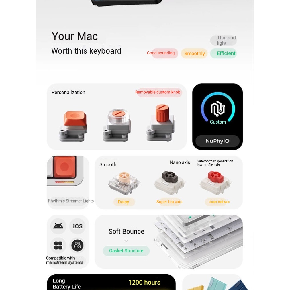 NuPhy Air75 V3 Short-axis mechanical keyboard with three modes compatible,Compatible with Mac