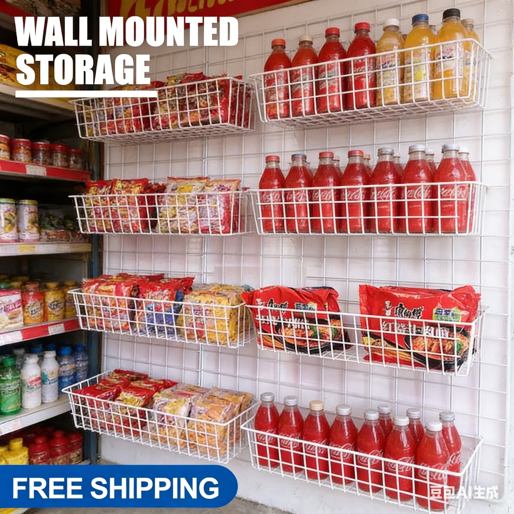 Hanging organizer wire mesh basket shelf hanging net sari sari store organizer storage basket