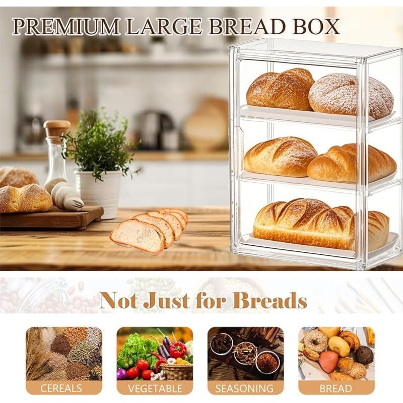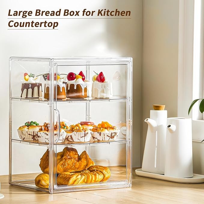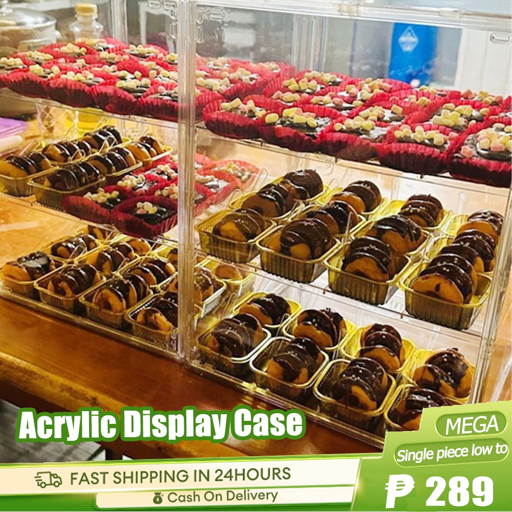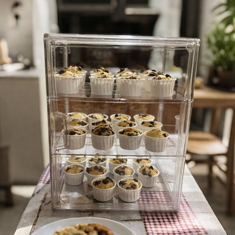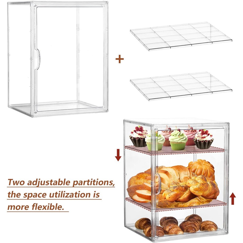 3 Layers Magnetic Dustproof Acrylic Display Case Food Dustproof Box Dessert Cake Bread Show Rack