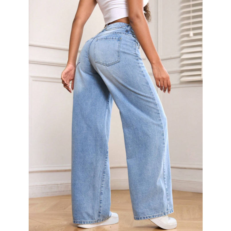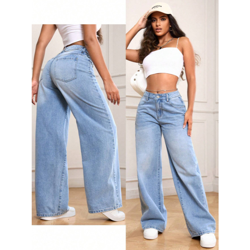 high waist baggy pants denim vintage light solid blue for women wide leg bermuda