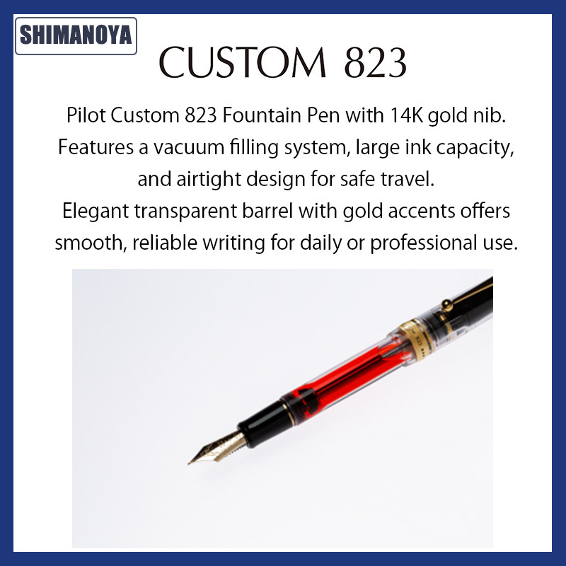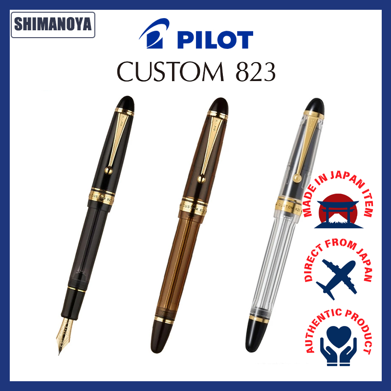 Pilot Custom 823 Fountain Pen 14K Gold Nib (Smoke, Amber) Vacuum Filling System Large Ink Capacity