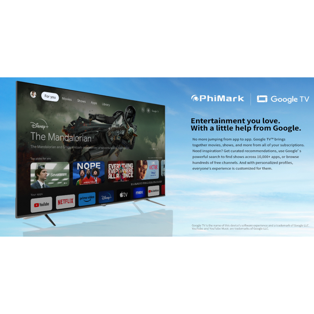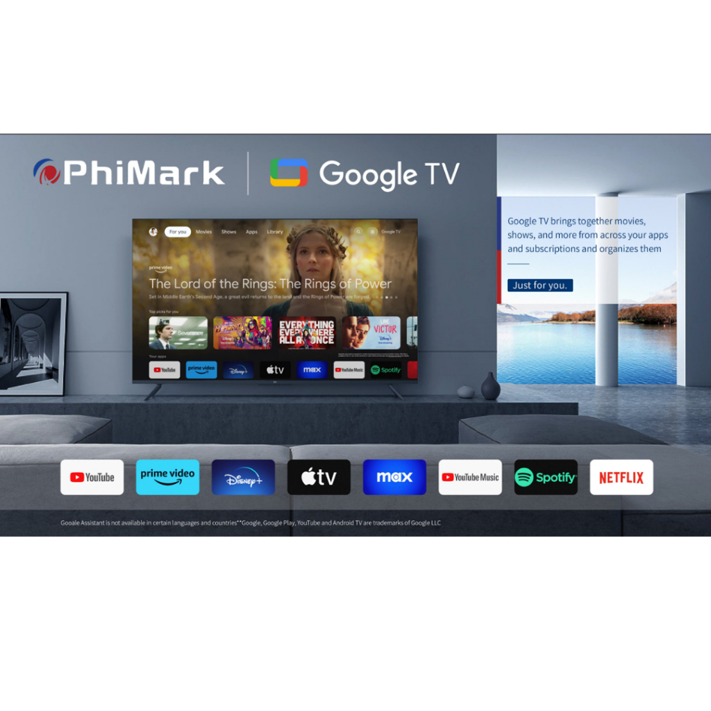 PhiMark 75" 4K Smart Google TV Smart Google TV, Frameless Design, HEY Google, Dolby Vision/Atmos