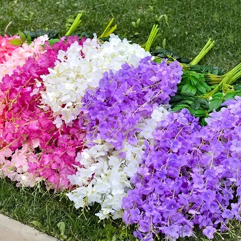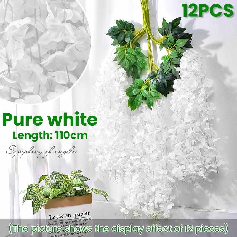 Artificial Wisteria Vine Whtie 110cm Fake Flowers Rattan Hanging Garland Silk Flowers String