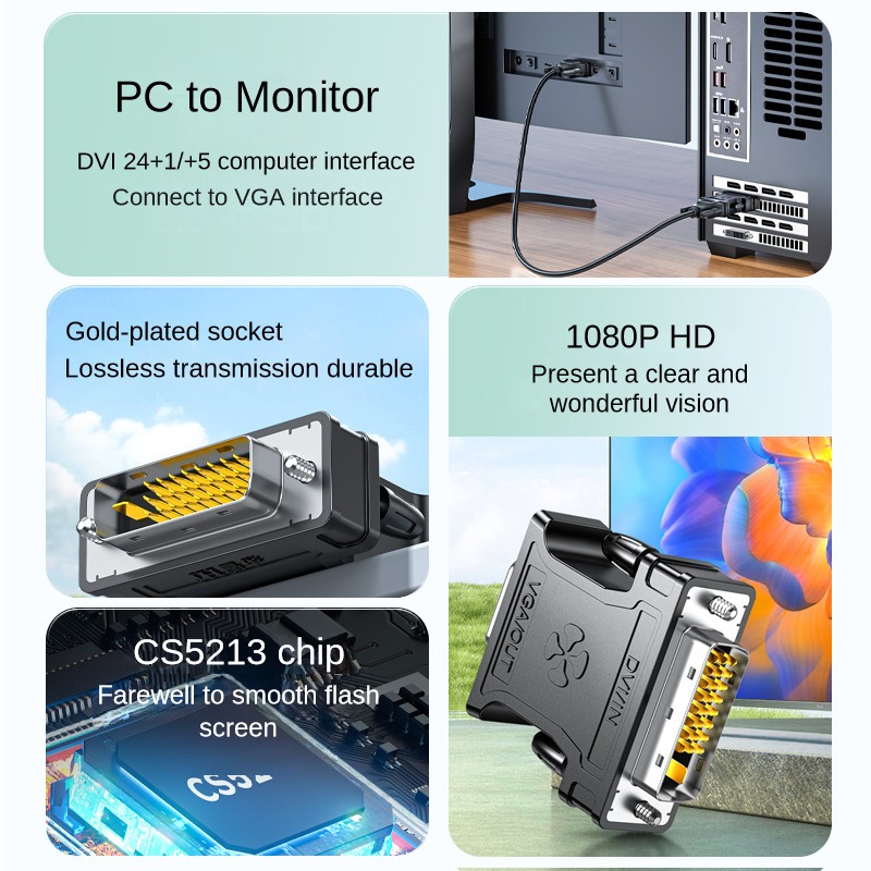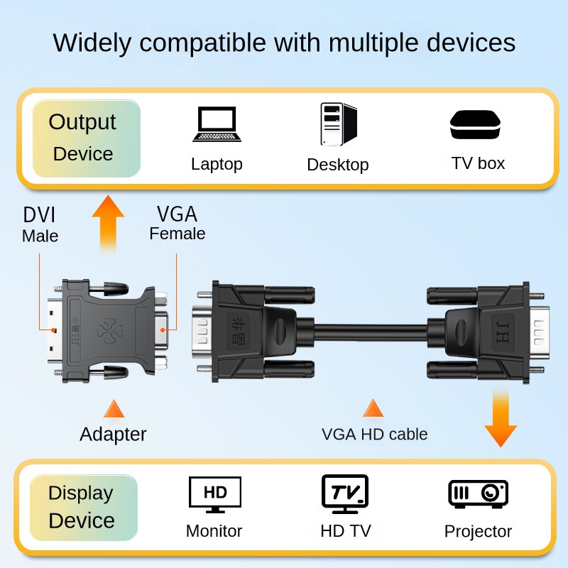 JH-LINK DVI(24+1/24+5) to VGA adapter Male to female 1080P for PC/graphics card to monitor/projector