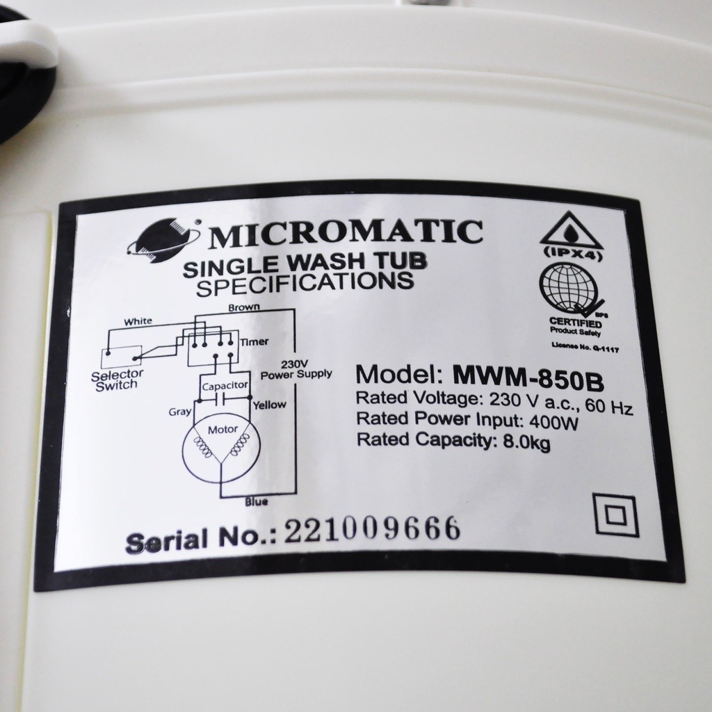 Micromatic by Winland Single Tub Washing Machine 8.0 kg with Free Drain Hose & Wash Board MWM-850
