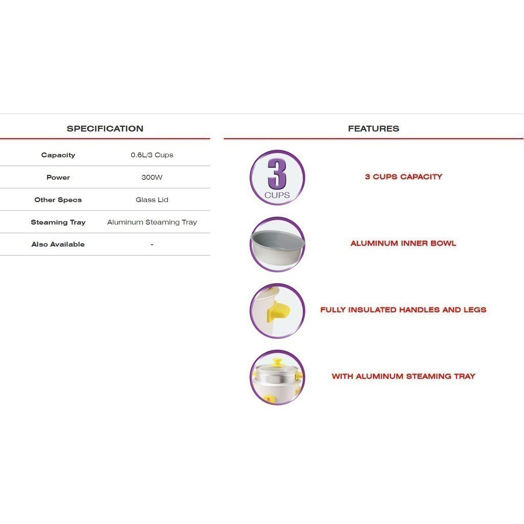Camel by Winland 0.6L 3 cups Rice Cooker with Steamer CRC-06S CRC06S