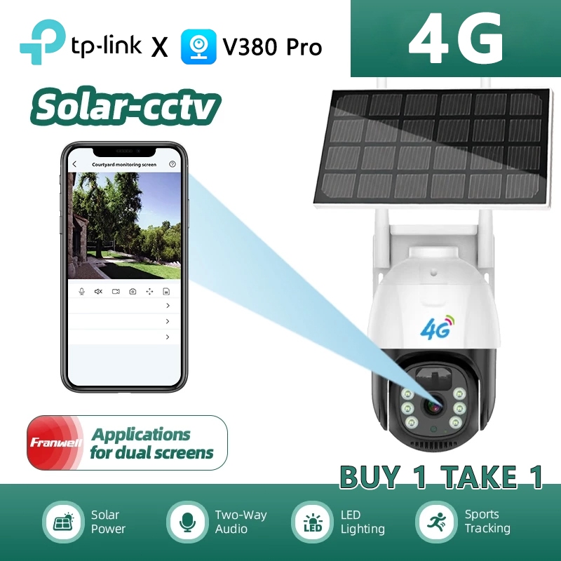 V380 Pro 4G SIM Card Solar CCTV Camera Outdoor Wifi/4G Needed Two-Way Audio 360Rotation Night Vision