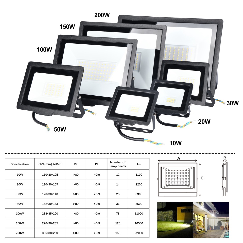 LED Flood Light Spot Light 20W 30W 50W 100W 200W Outdoor Street Lamp Waterproof For Street Yard