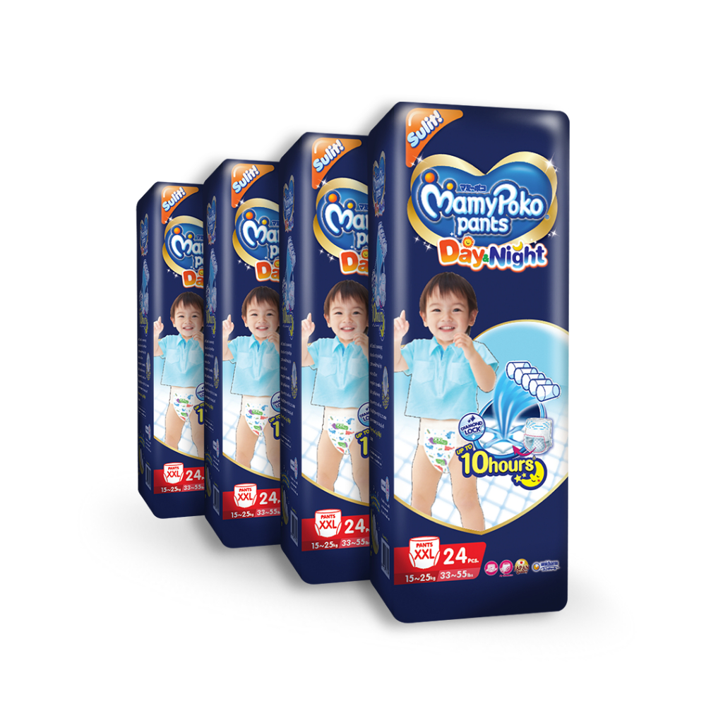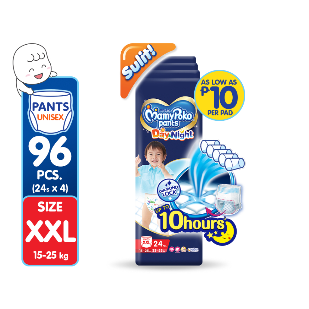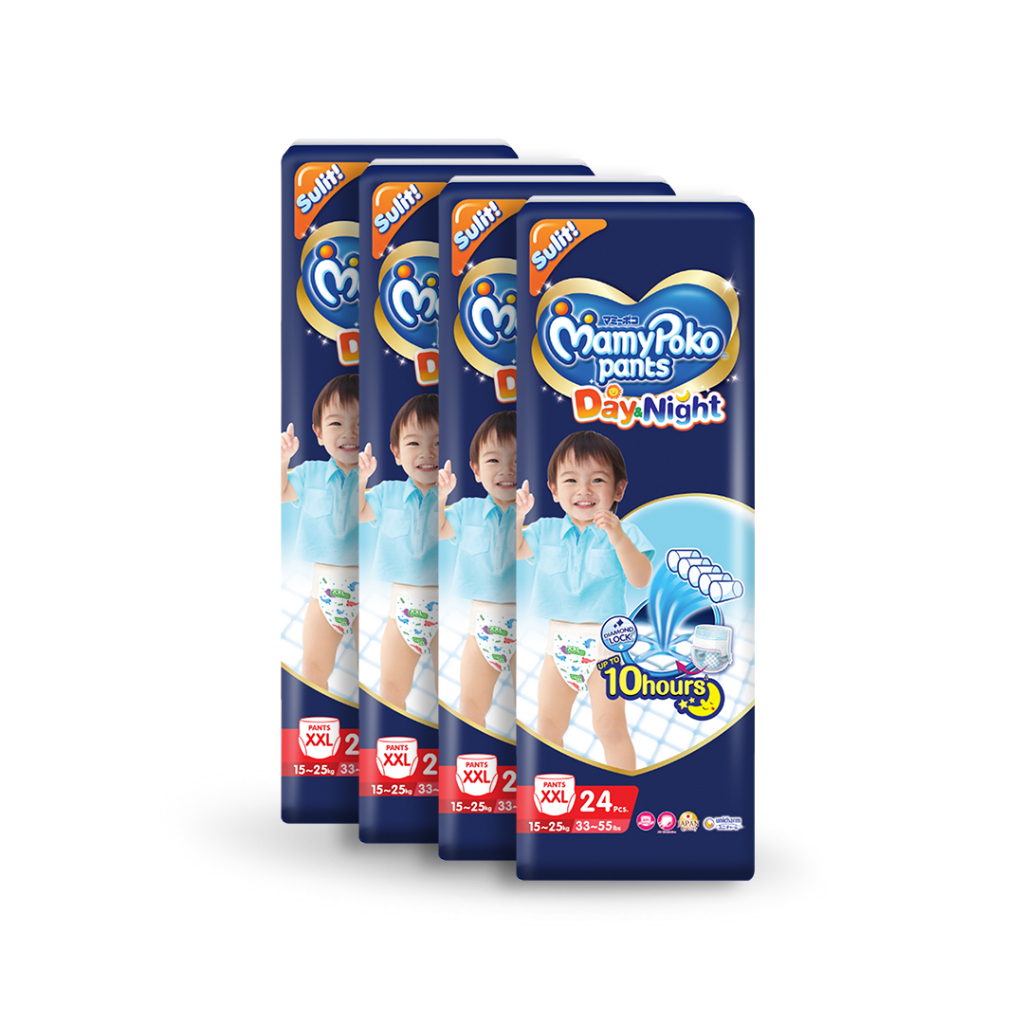 MAMYPOKO Day and Night Baby Disposable Diaper Pants Unisex XXL 24 pcs x 4 packs (96 pcs)