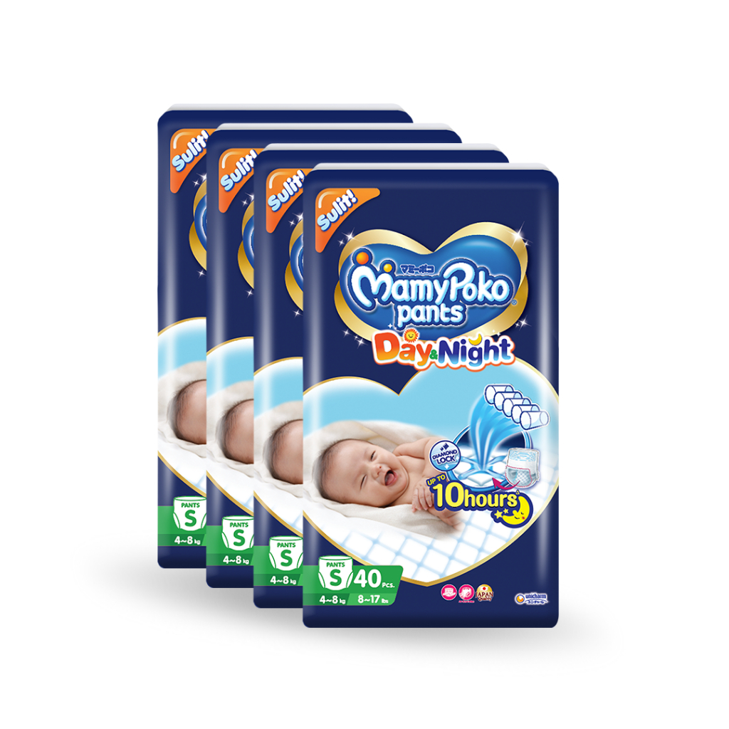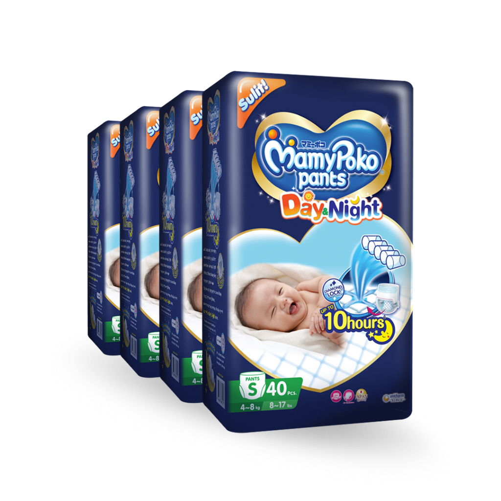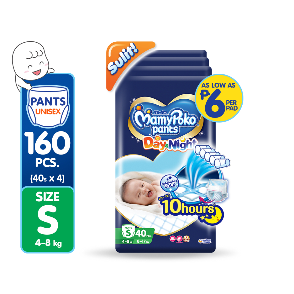 MAMYPOKO Day and Night Baby Disposable Diaper Pants Unisex Small 40 pcs x 4 packs (160 pcs)