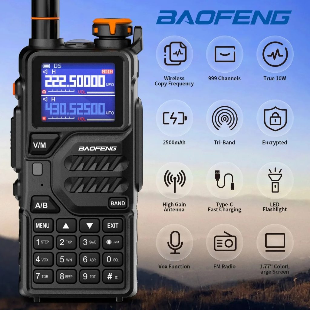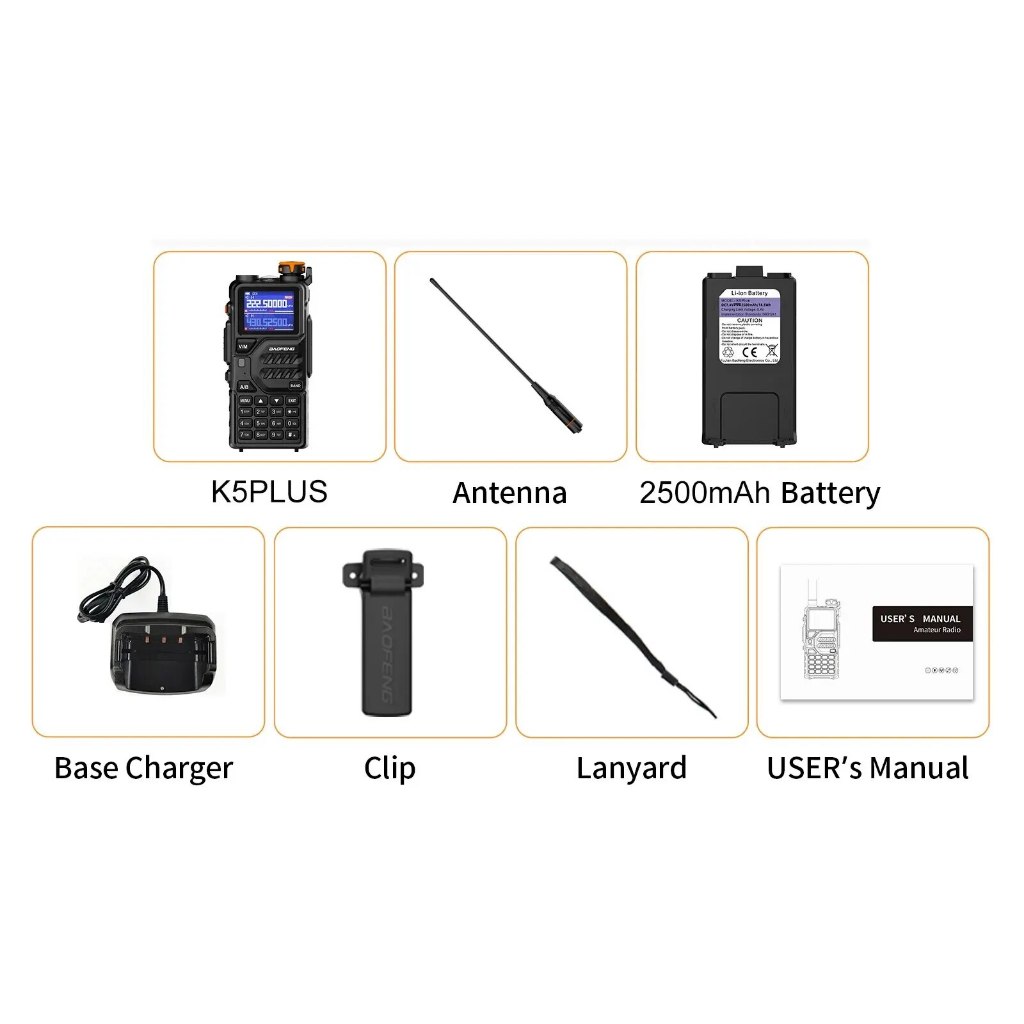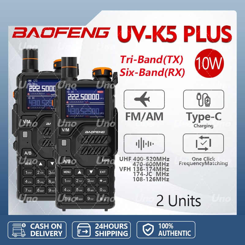 Baofeng K5 Plus 2Units Walkie Talkie Tri Band Radio LCD 999CH AM/FM 10W Type-C Charging Long Range