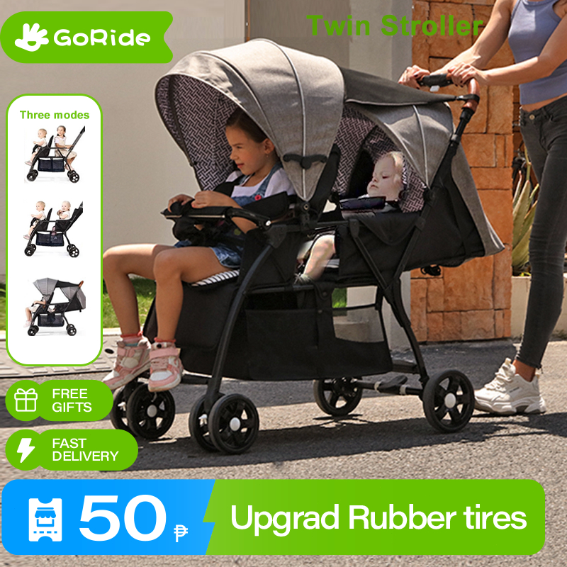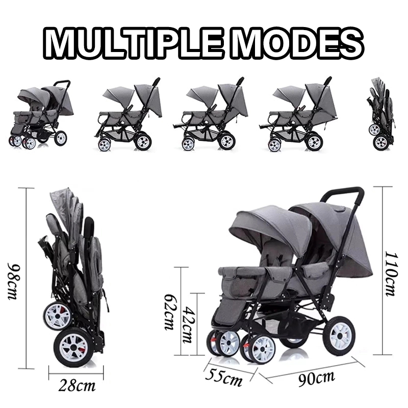 【Warranty】Twin Stroller for Baby Double Seat Lightweight Foldable Two-Way Baby Stroller